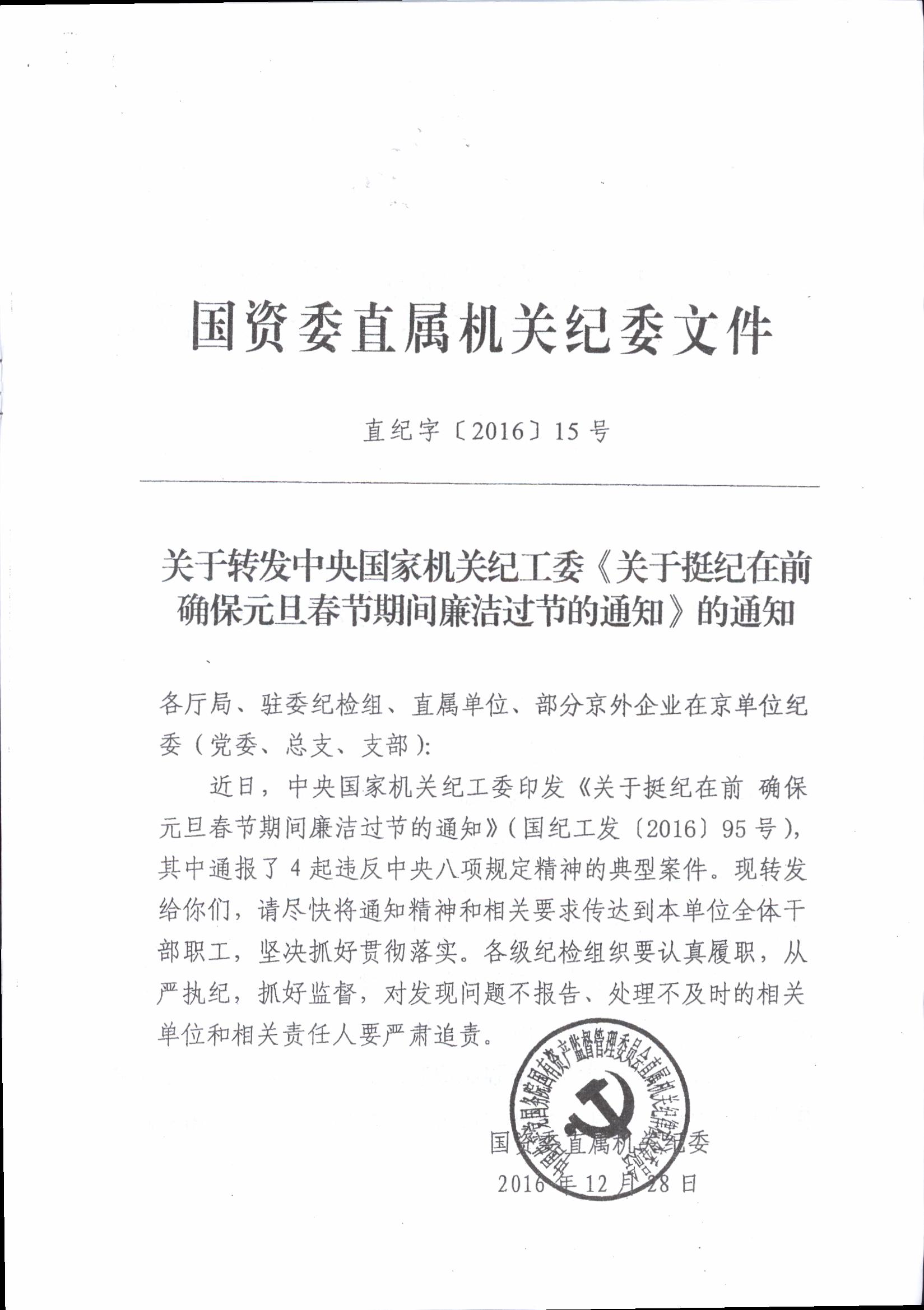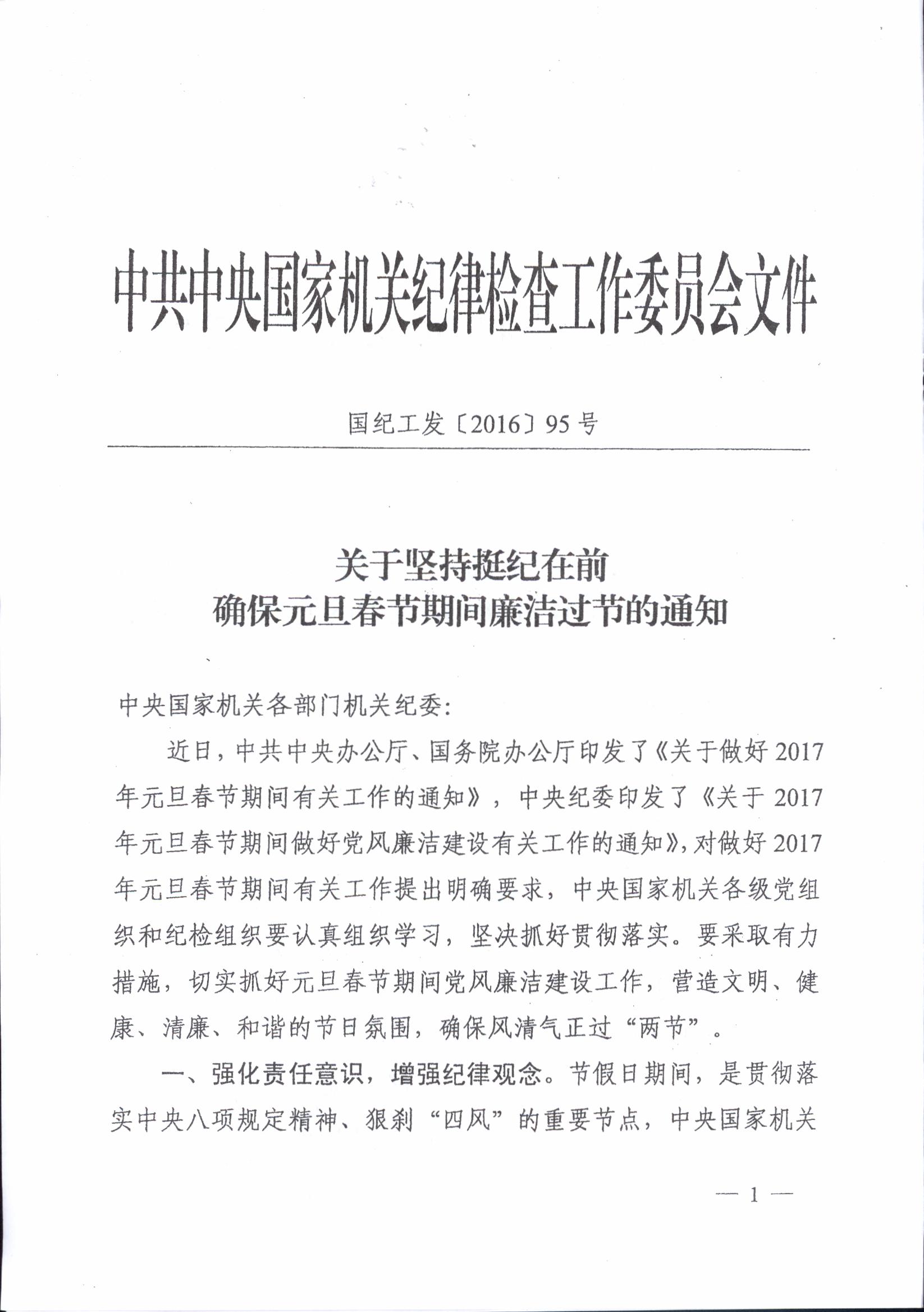 轉(zhuǎn)發(fā)中央國家機關(guān)紀工委《關(guān)于挺紀在前確保元旦春節(jié)期間廉潔過節(jié)的通知》的通知