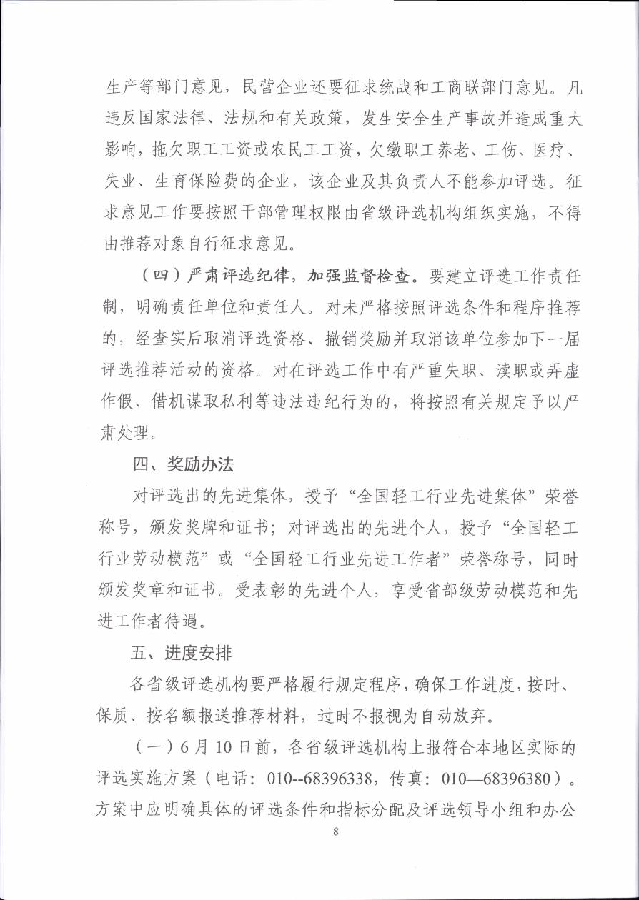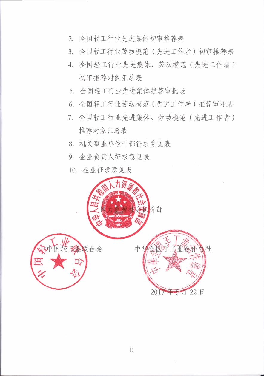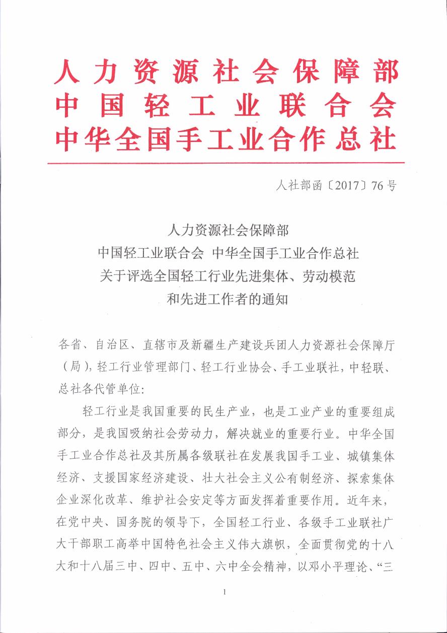 人力資源社會保障部 中國輕工業(yè)聯(lián)合會 中華全國手工業(yè)合作總社 關(guān)于評選全國輕工行業(yè)先進集體、勞動模范 和先進工作者的通知