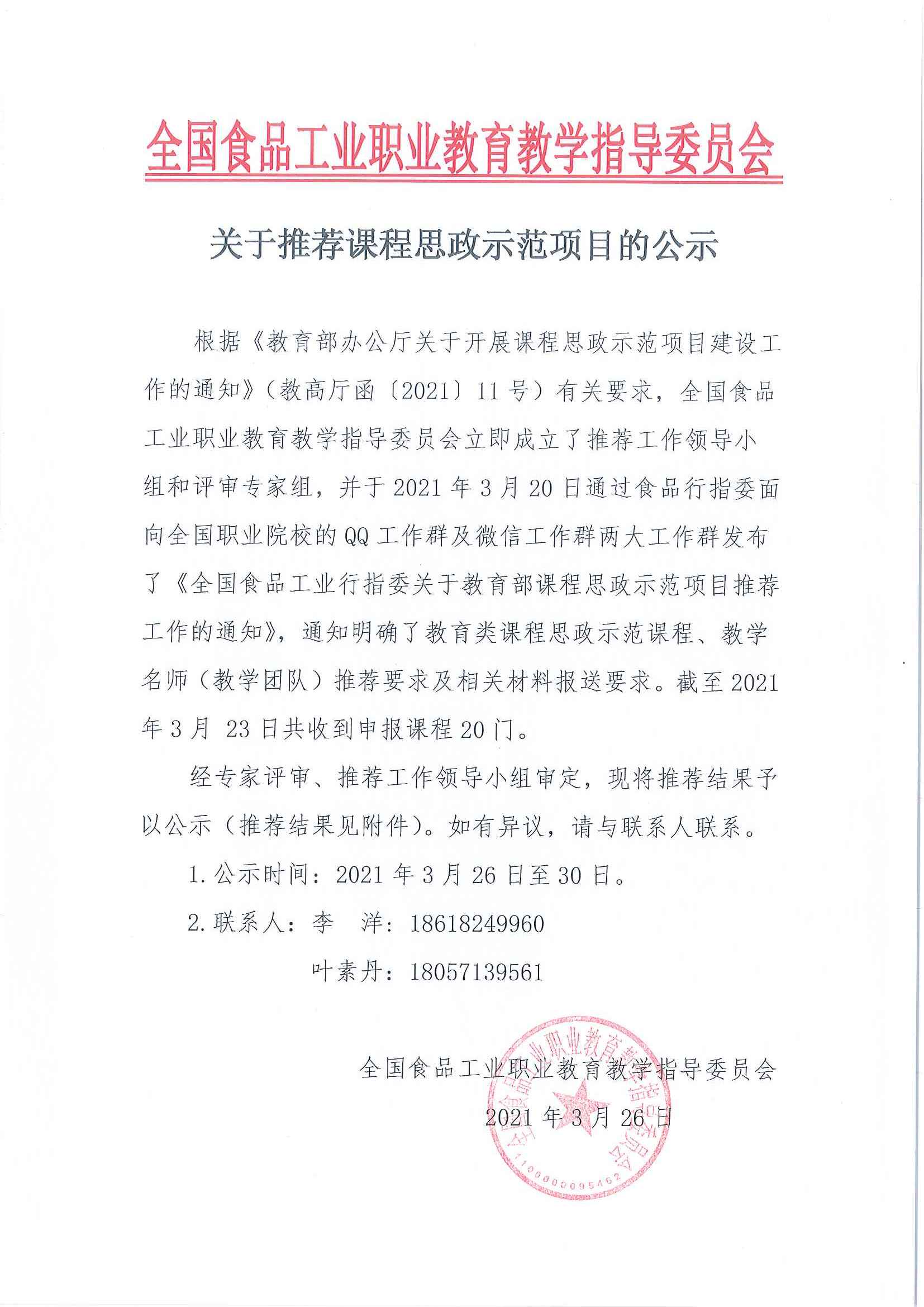 關(guān)于推薦課程思政示范項目的公示