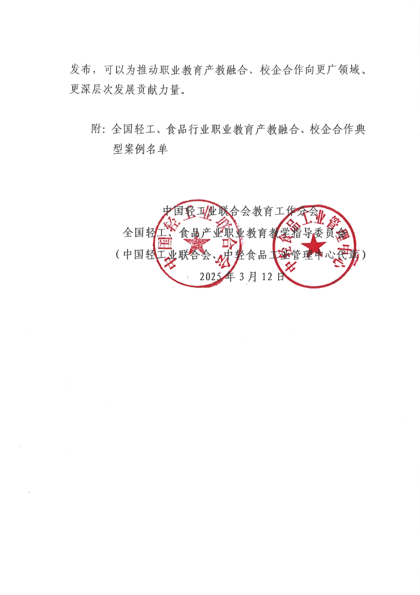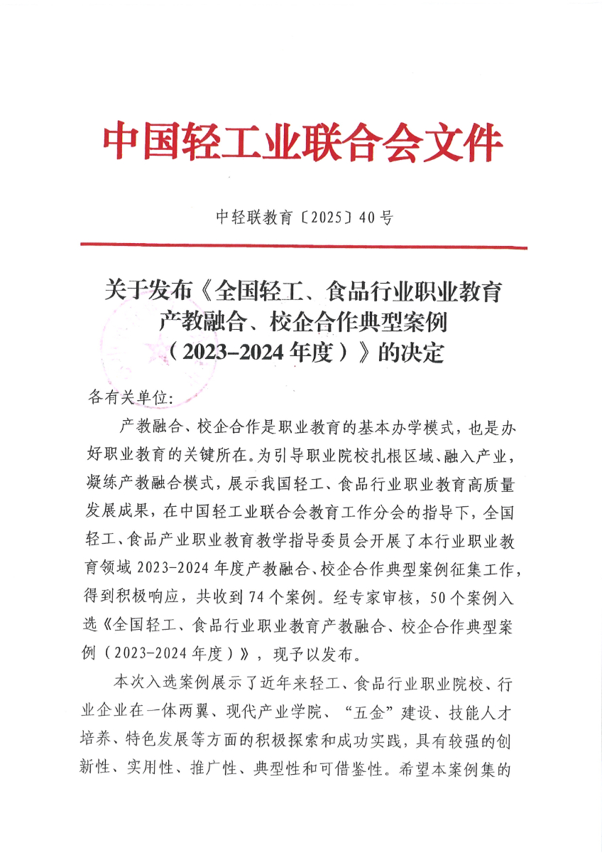 中輕聯(lián)教育〔2025〕40號(hào) 關(guān)于發(fā)布《全國輕工、食品行業(yè)職業(yè)教育產(chǎn)教融合、校企合作典型案例(2023-2024年度)》的決定.pdf
