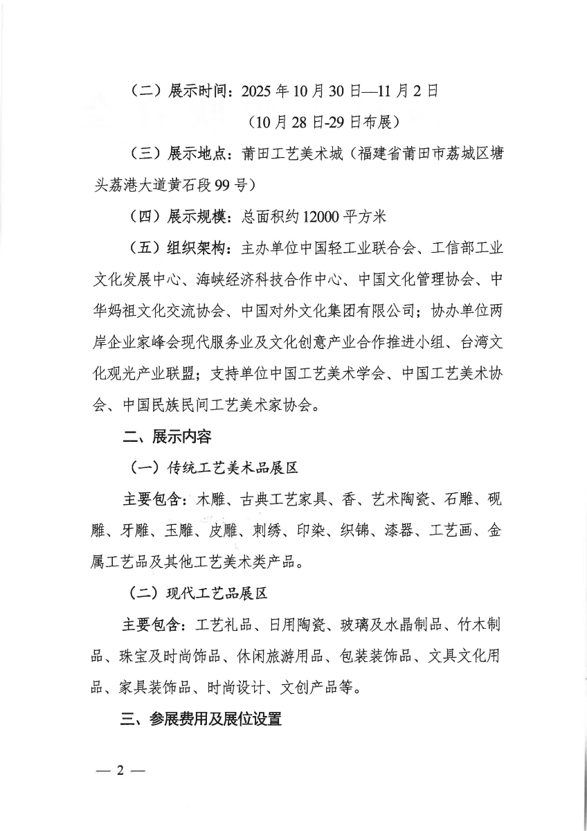 關(guān)于舉辦2025海峽兩岸(莆田)工藝品博覽會的通知