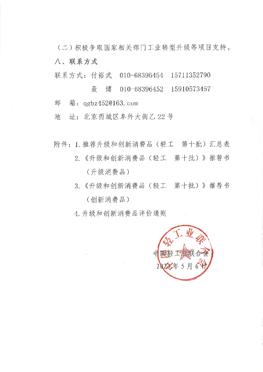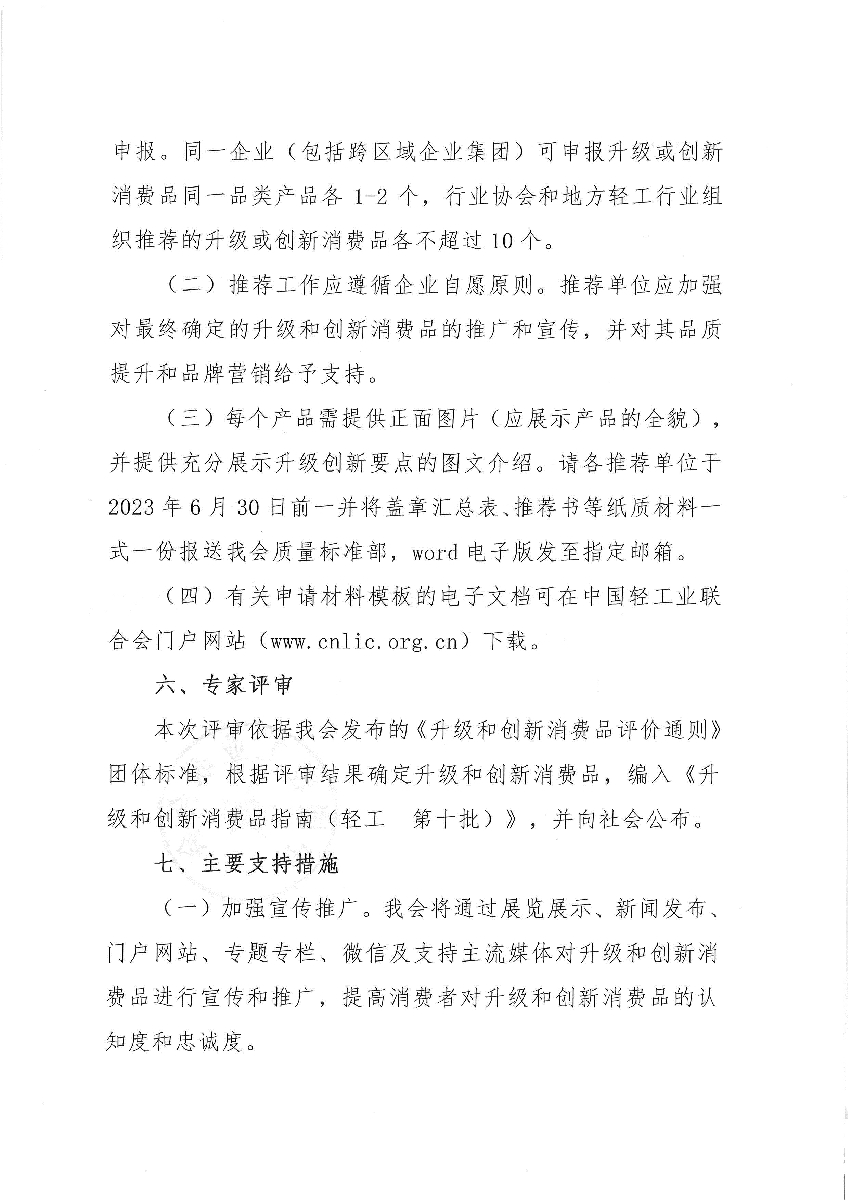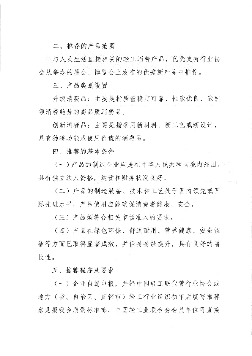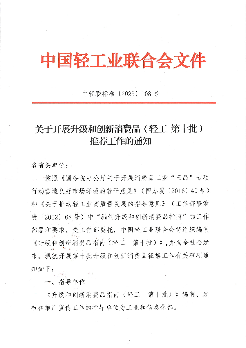 關于開展升級和創(chuàng)新消費品(輕工 第十批)推薦工作的通知