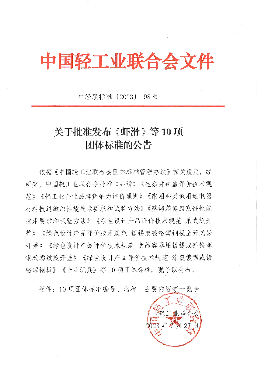 關(guān)于批準(zhǔn)發(fā)布《蝦滑》等10項(xiàng)團(tuán)體標(biāo)準(zhǔn)的公告