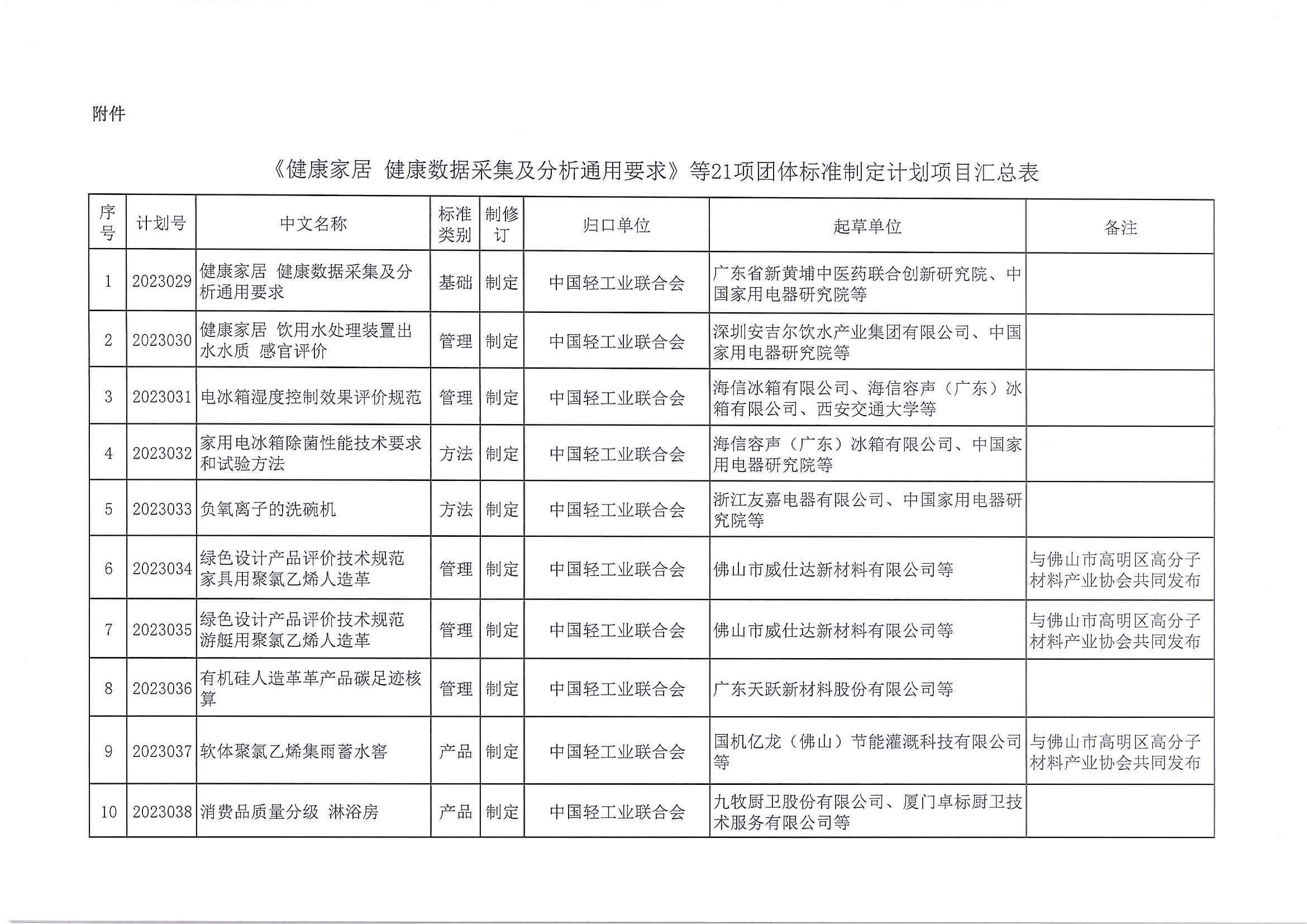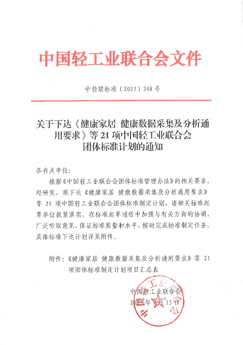 關(guān)于下達《健康家居 健康數(shù)據(jù)采集及分析通用條件》等21項中國輕工業(yè)聯(lián)合會團體標準計劃的通知