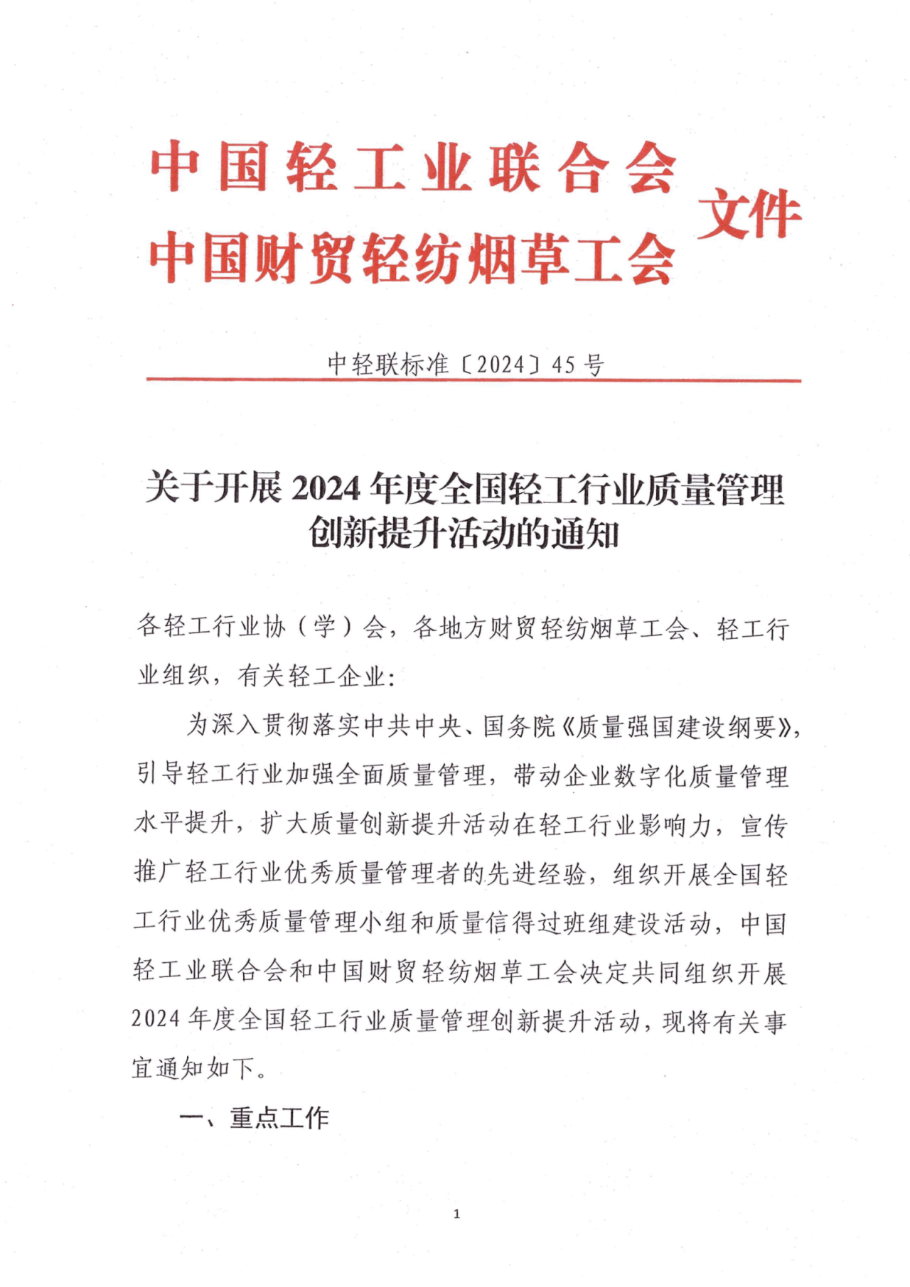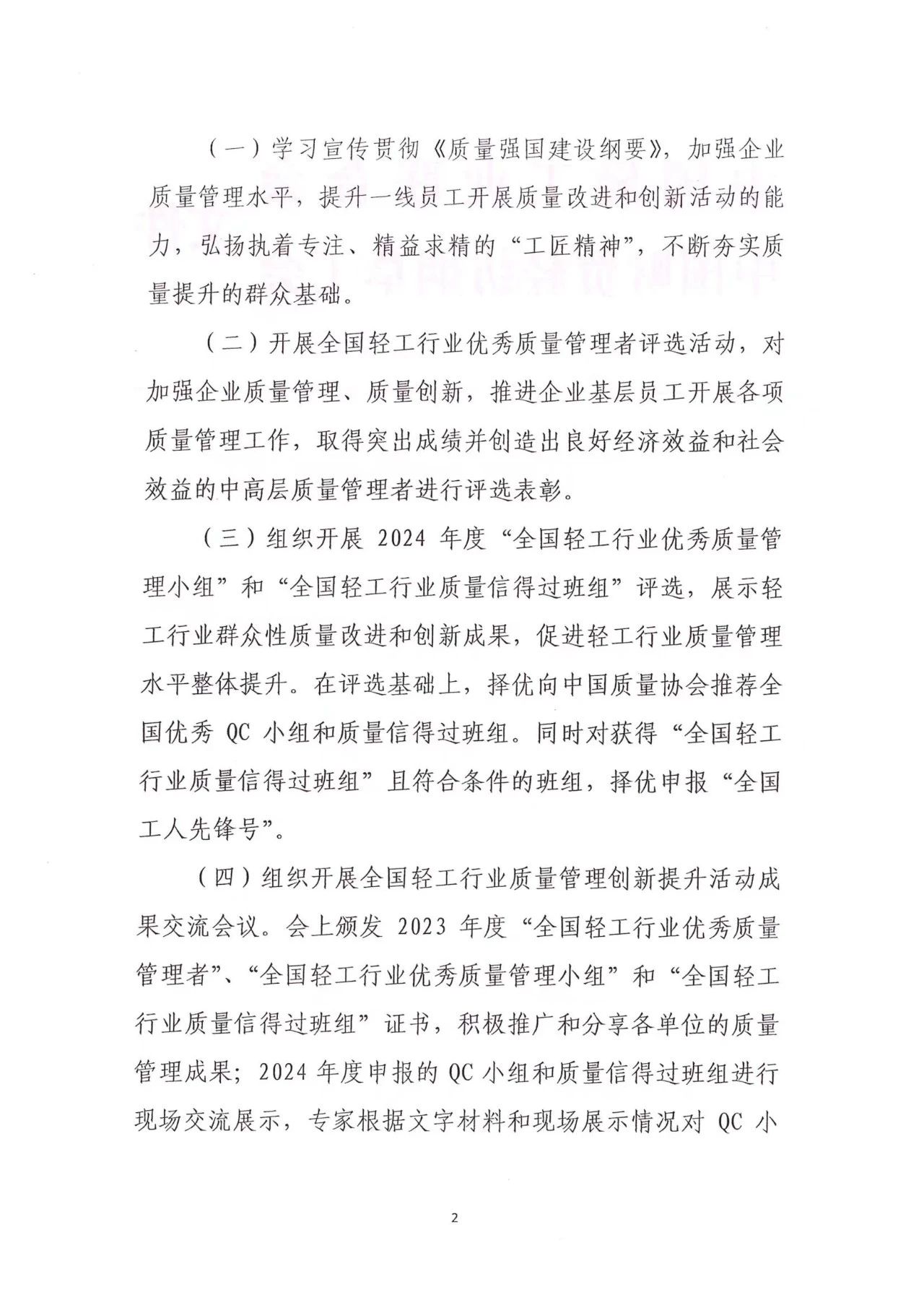關(guān)于開展2024年度全國輕工行業(yè)質(zhì)量管理創(chuàng)新提升活動的通知