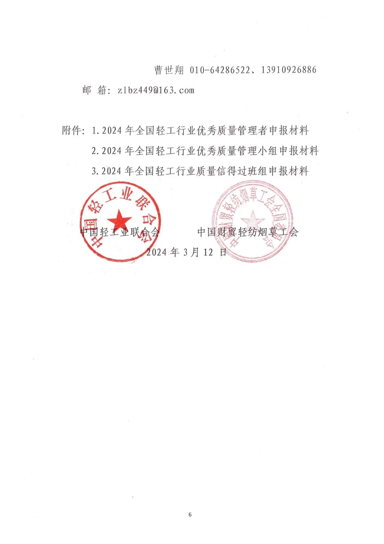| 3、 | 2024年全國輕工行業(yè)質(zhì)量信得過班組申報(bào)材料 |