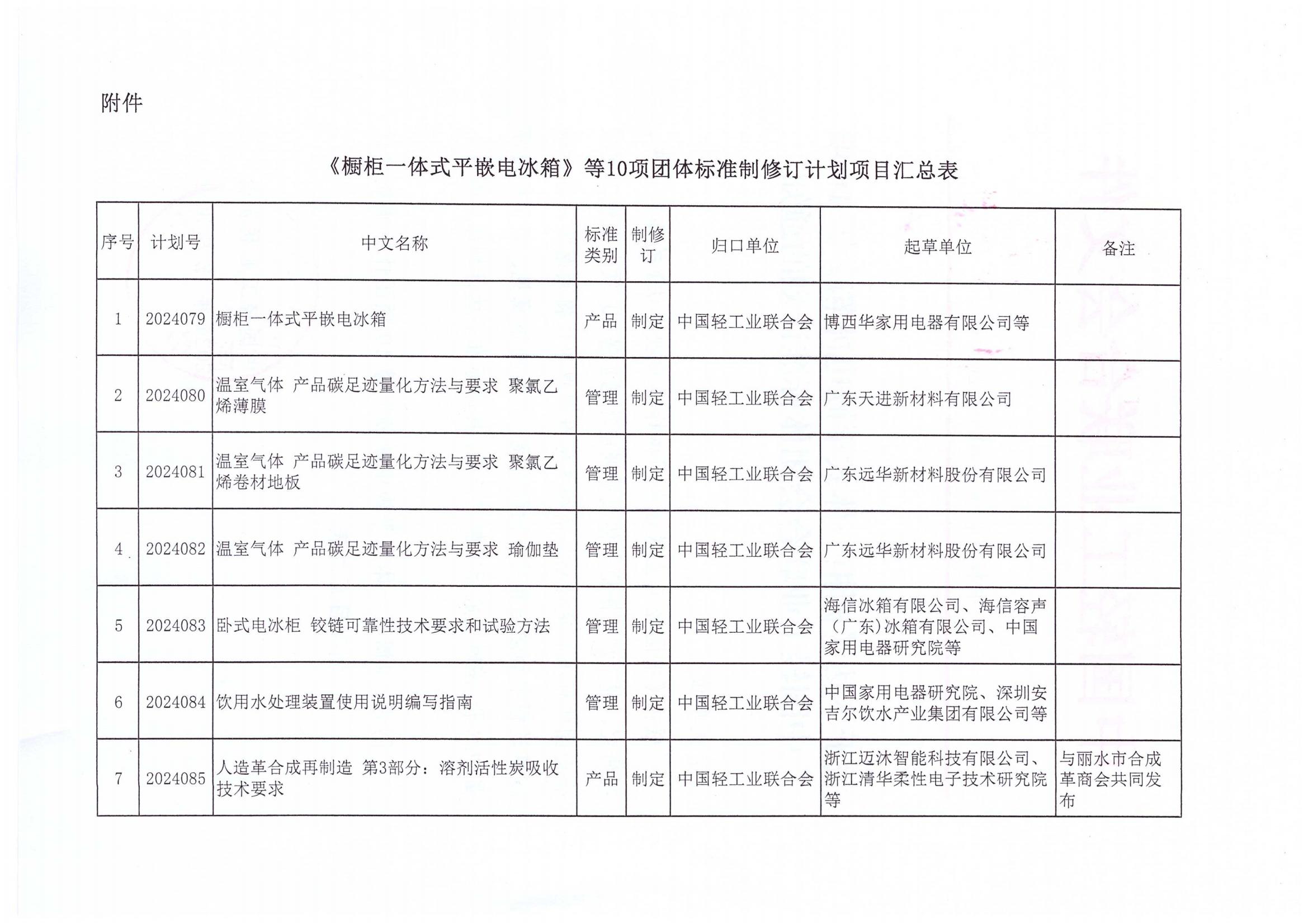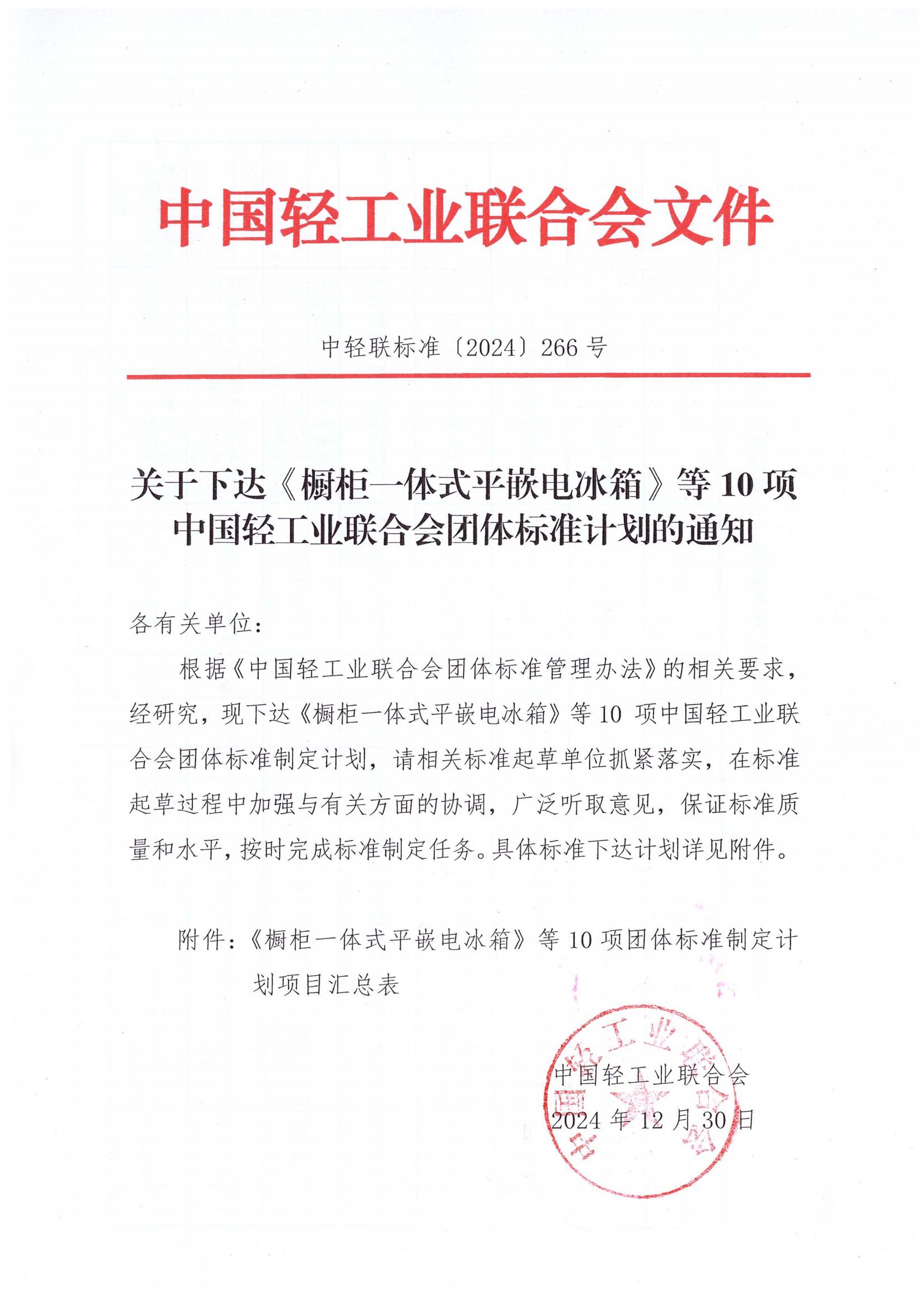 關(guān)于下達(dá)《櫥柜一體式平嵌電冰箱》等10項(xiàng)中國輕工業(yè)聯(lián)合會(huì)團(tuán)體標(biāo)準(zhǔn)計(jì)劃的通知