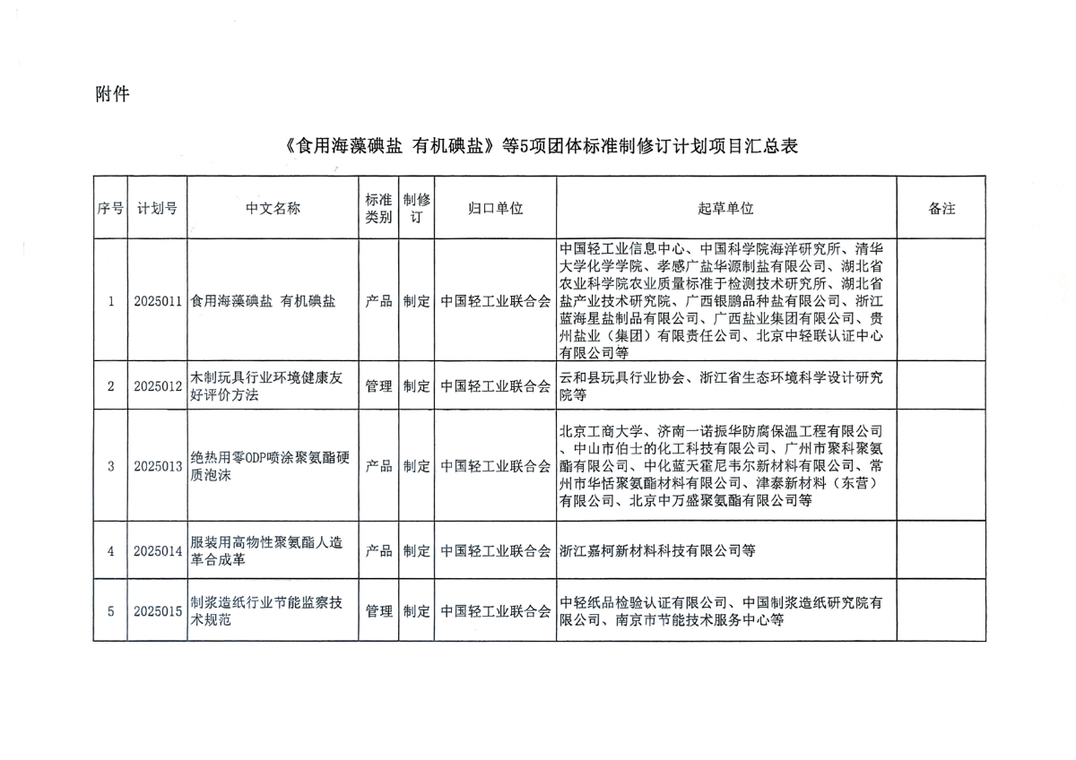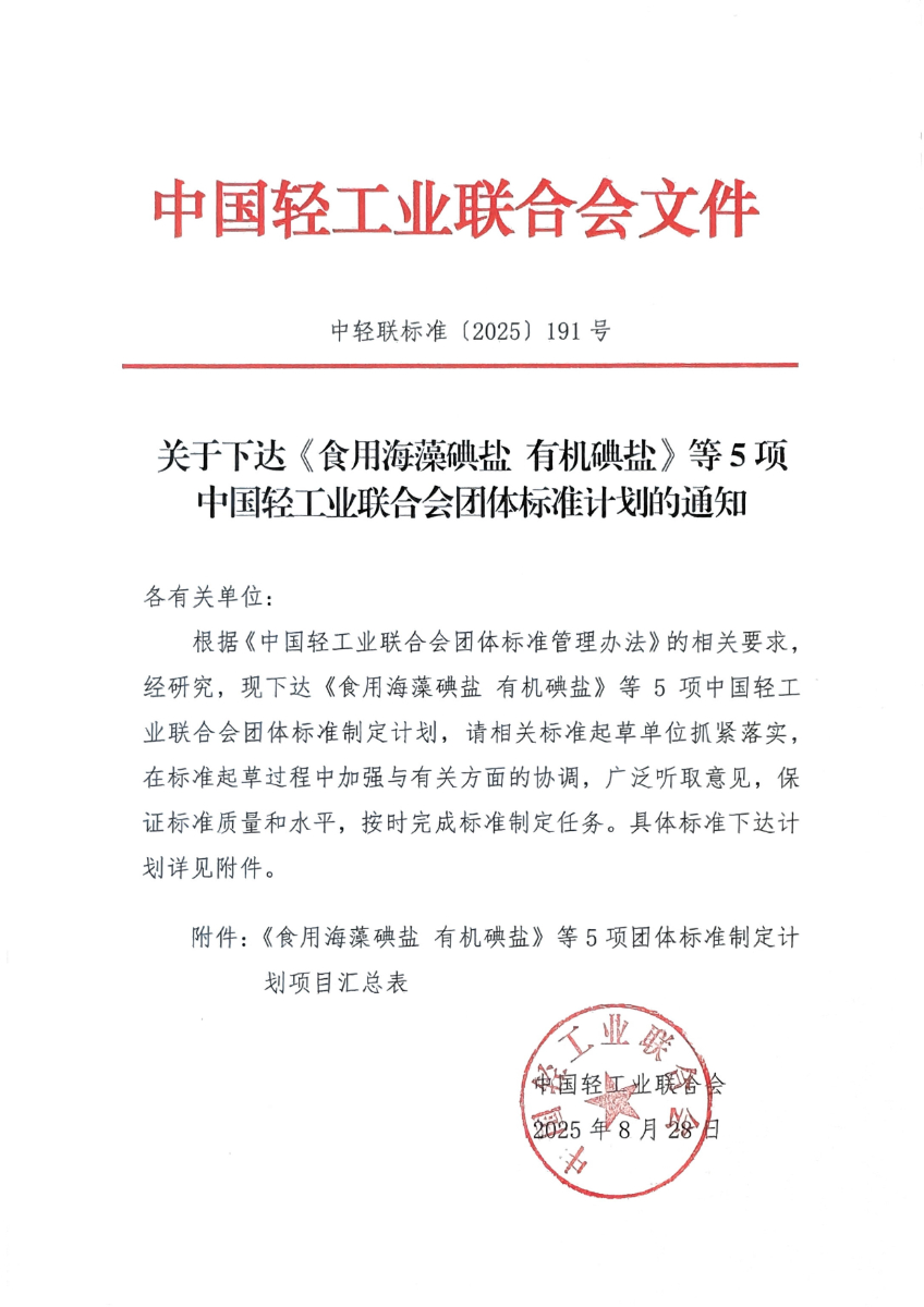 關(guān)于下達(dá)《食用海藻碘鹽 有機(jī)碘鹽》等5項(xiàng)中國(guó)輕工業(yè)聯(lián)合會(huì)團(tuán)體標(biāo)準(zhǔn)計(jì)劃的通知.pdf