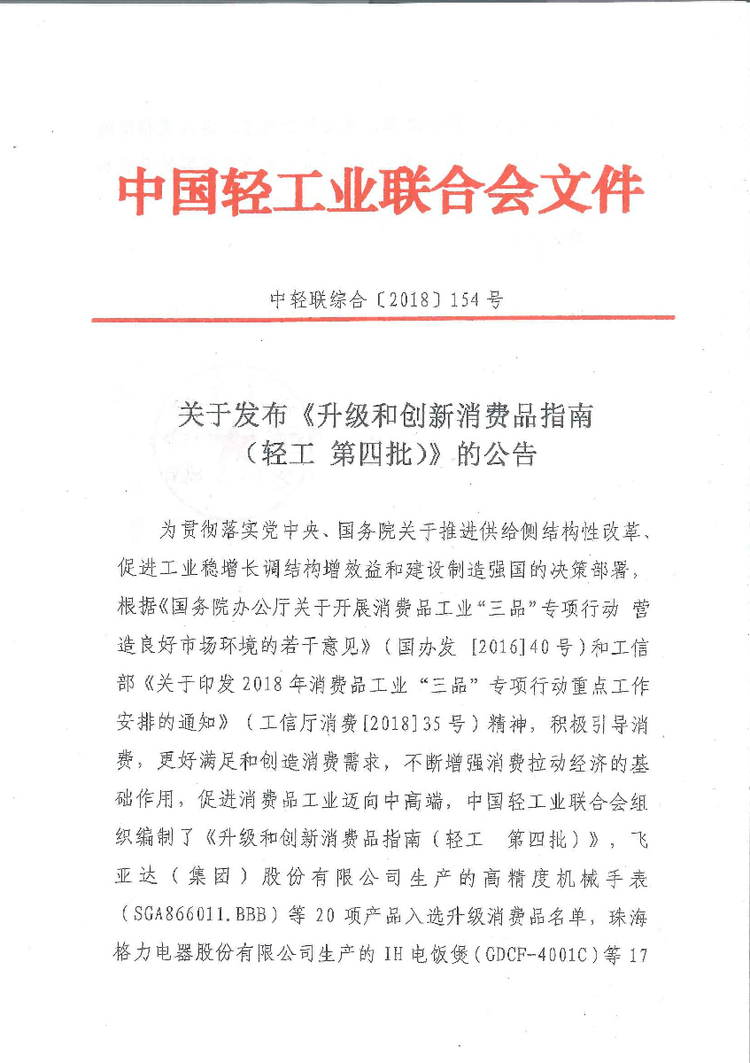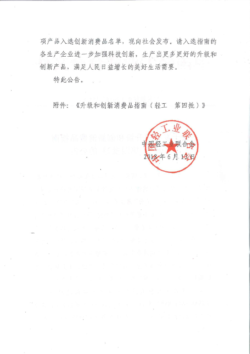 關(guān)于發(fā)布《升級(jí)和創(chuàng)新消費(fèi)品指南(輕工 第四批)》的公告