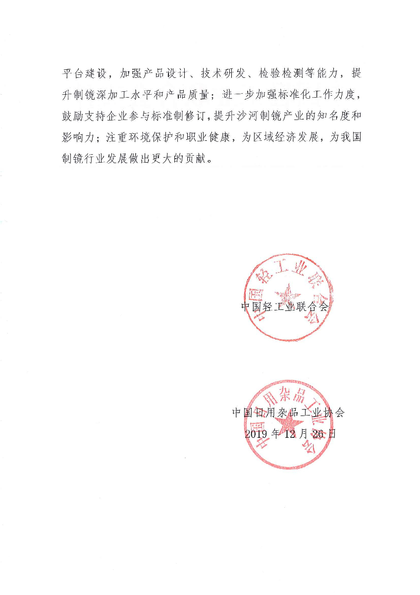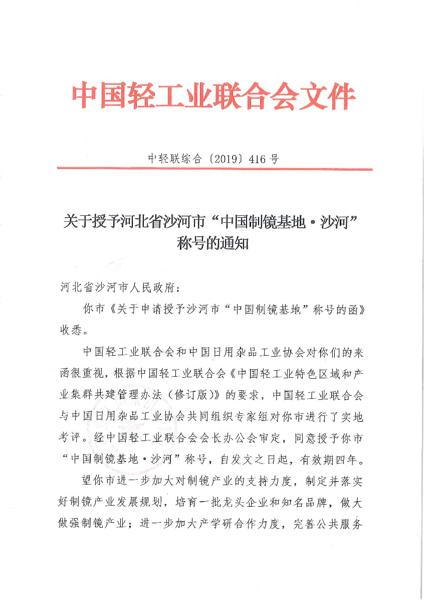關于授予河北省沙河市“中國制鏡基地·沙河”稱號的通知