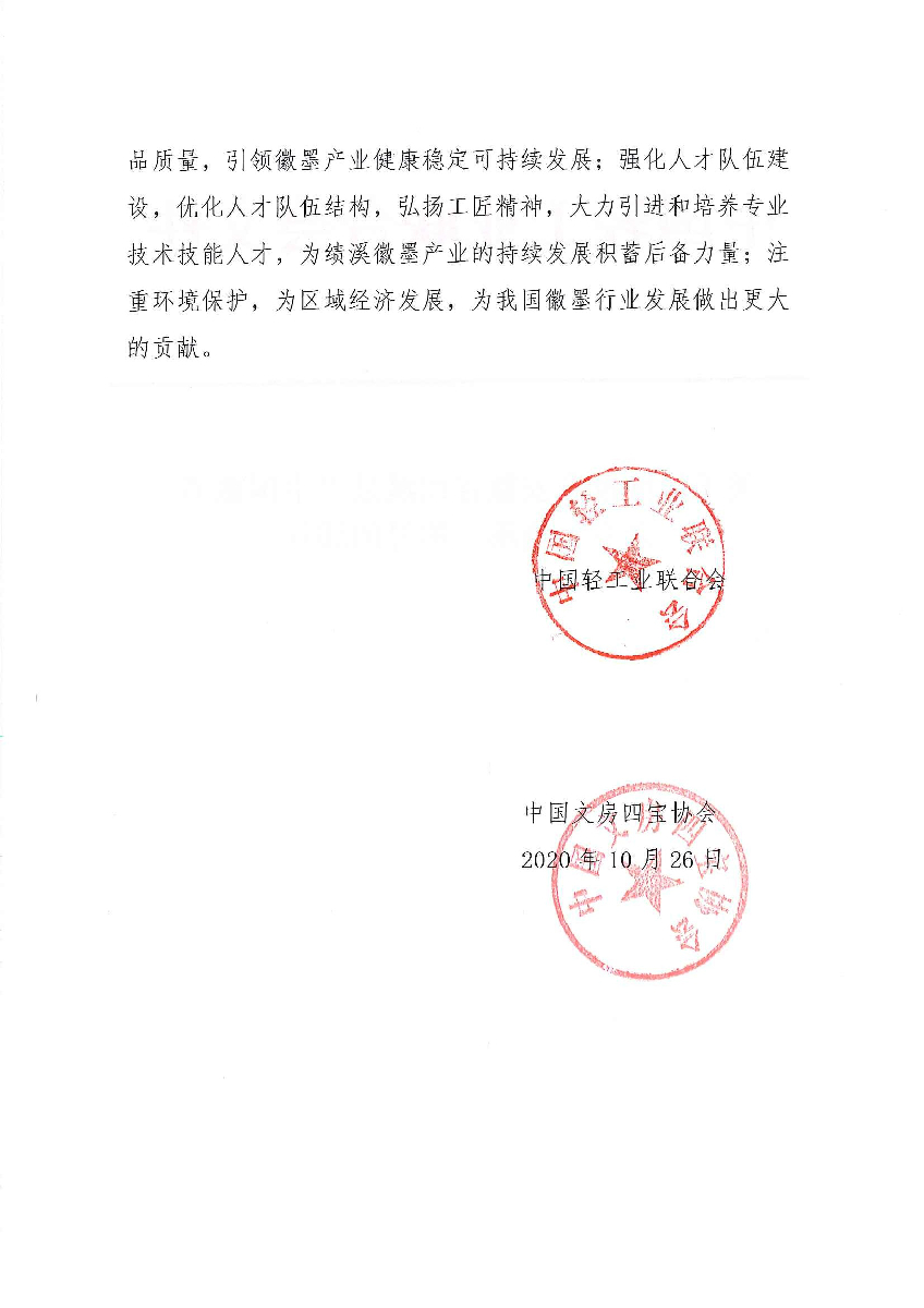 關(guān)于繼續(xù)授予安徽省績溪縣“中國徽墨之鄉(xiāng)·績溪”稱號的通知
