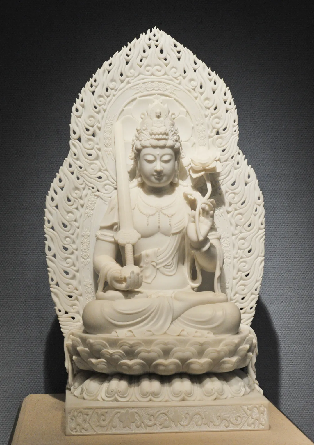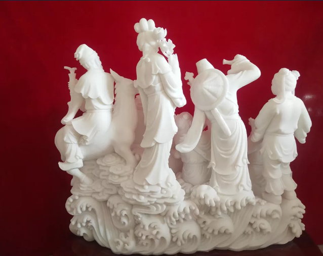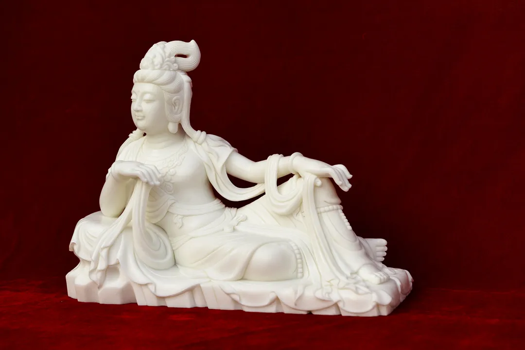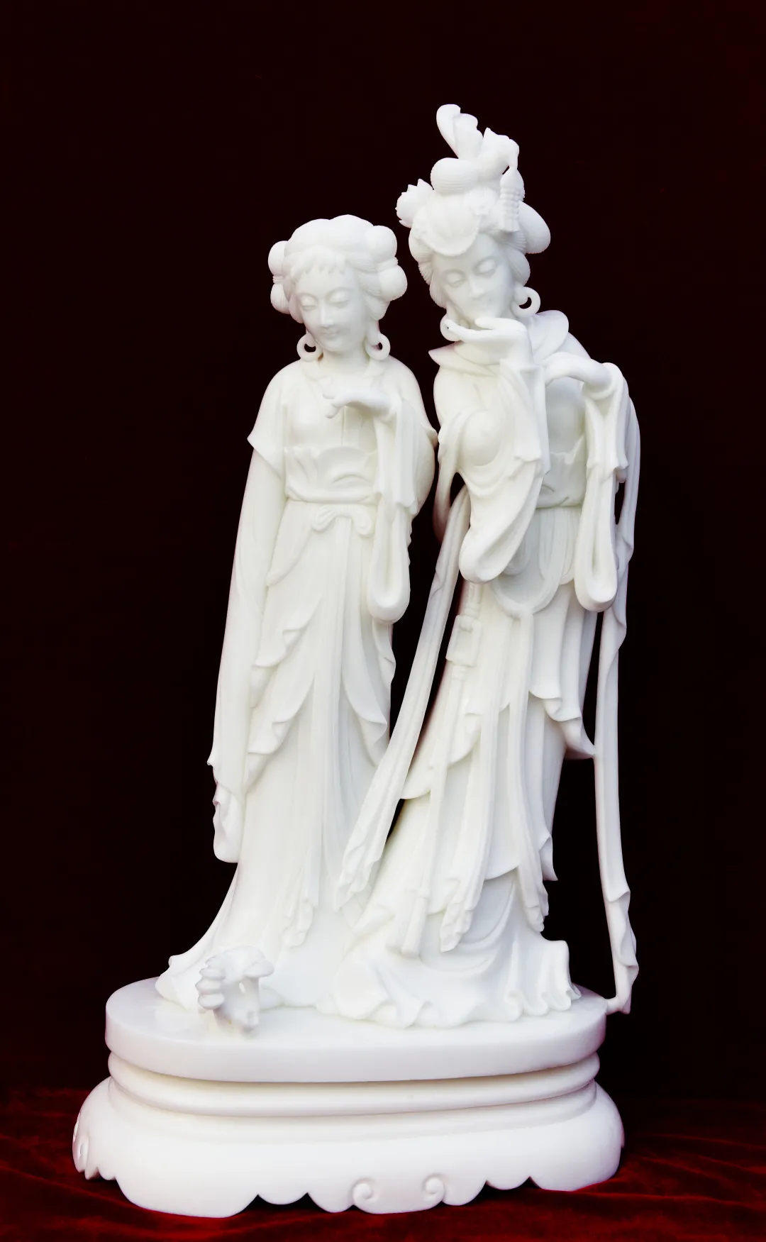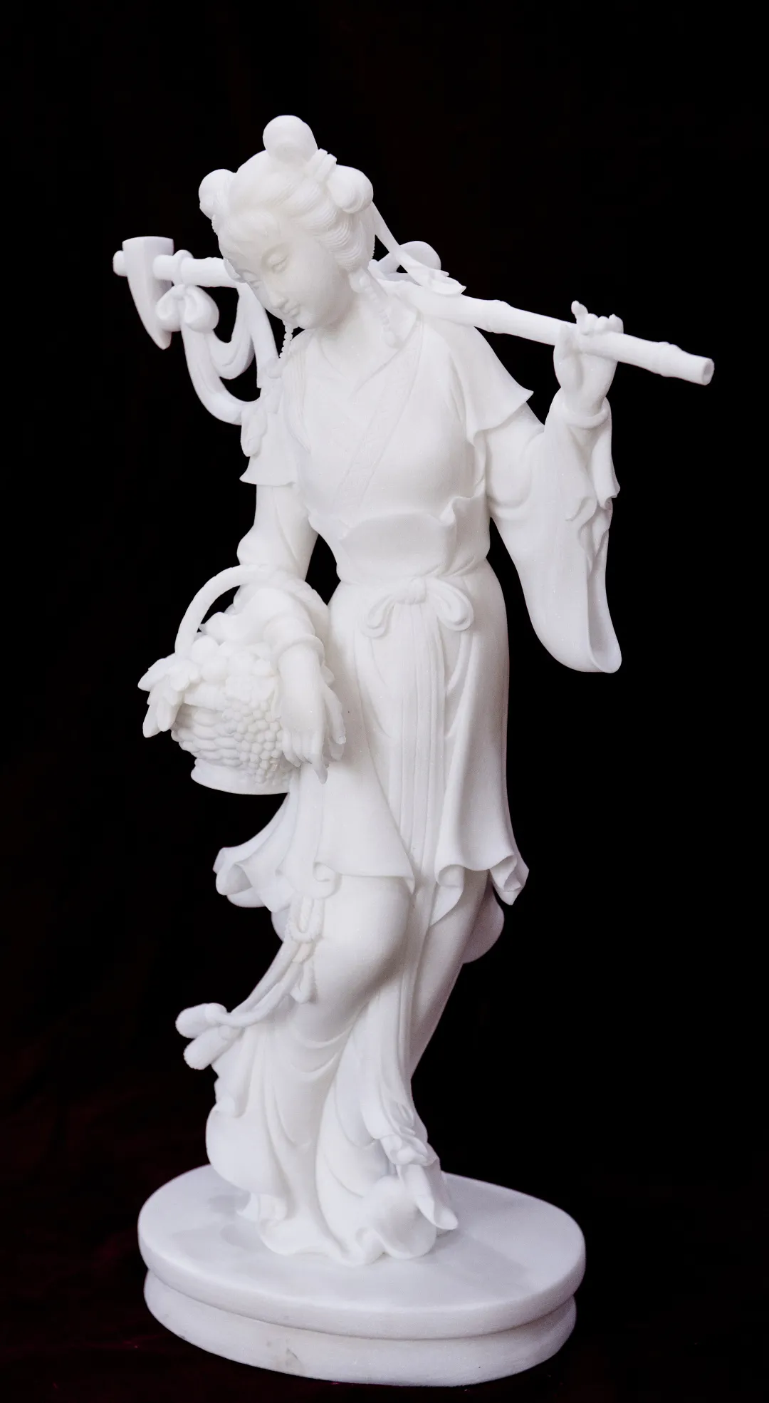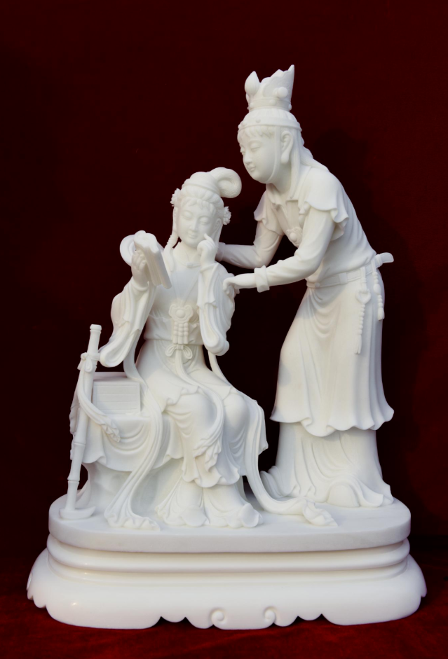 作品根據(jù)詩人白居易的詩詞意境創(chuàng)作,以優(yōu)質(zhì)漢白玉為原料,通過精湛的雕刻技藝,把無語的石頭演化成一尊具有生命力的作品,給人一種莊嚴(yán)肅穆的美感。