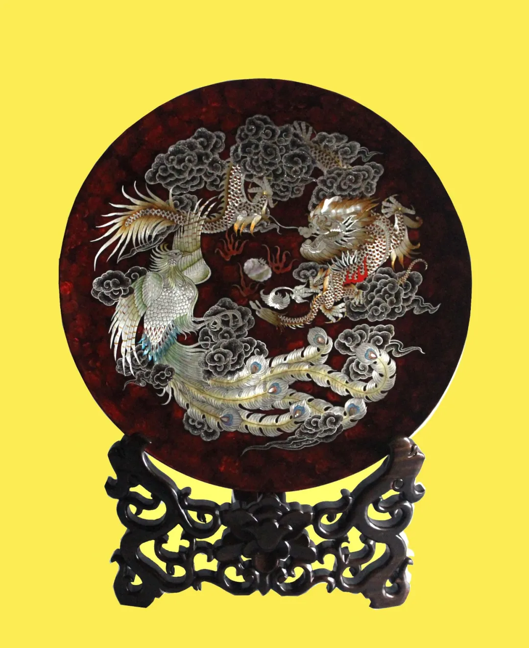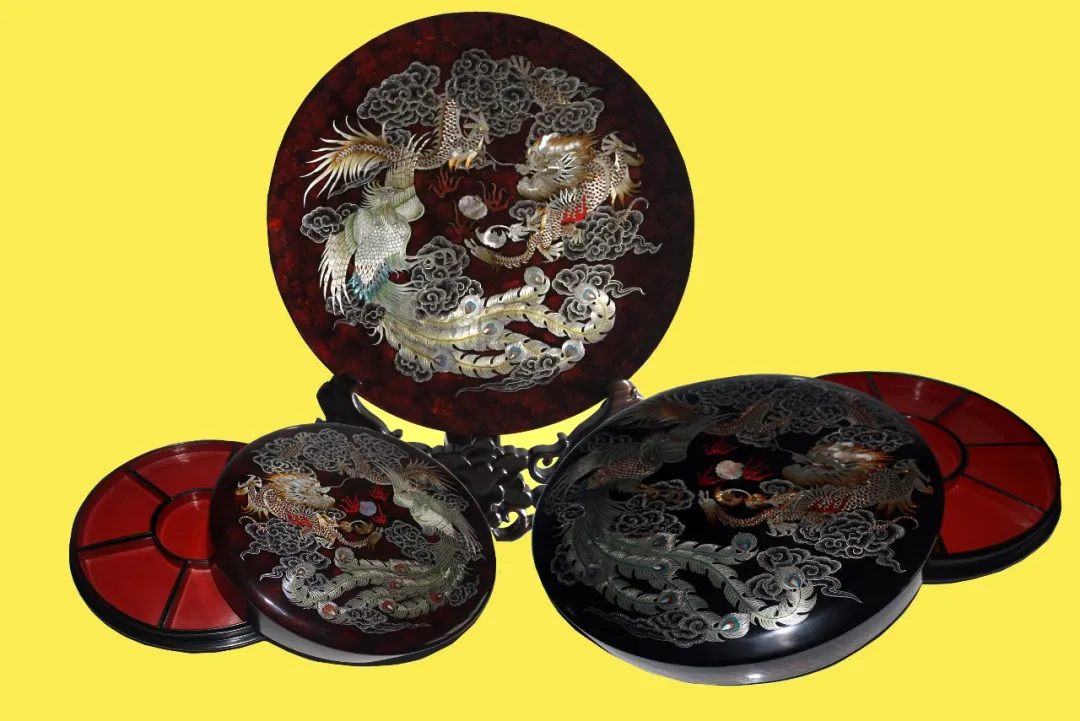 嵌銀龍鳳漆盤