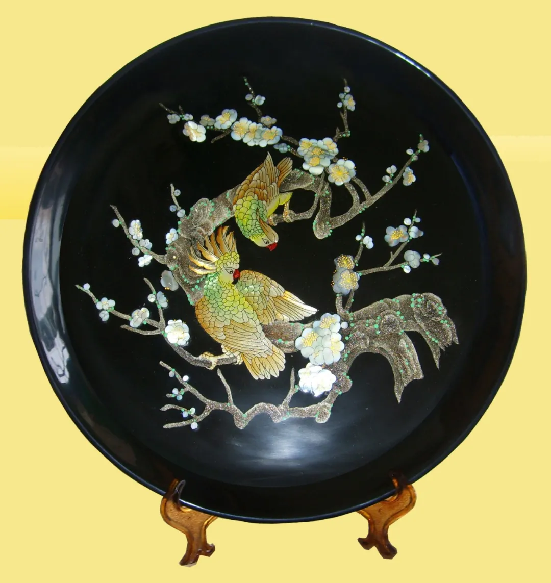鸚鵡鬧梅漆盤