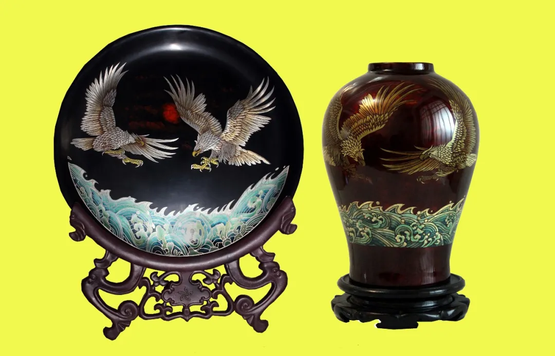 雕漆嵌花雙鷹漆器