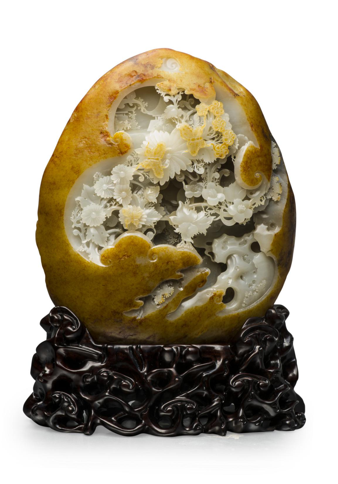 趙國安大師的作品構思巧妙,充分尊重原料的天然色澤和自然紋理,依色賦型,自然天成,栩栩如生,凸顯了玉石的天然之美;雕琢細膩,玲瓏剔透,大氣不失含蓄,以巧思、細膩、精致的獨特風格,將玉石溫、純、柔、雅的品質展現(xiàn)得淋漓盡致。《喜上眉梢》《福滿人間》《旺財》等作品在全國各類評比中,獲得多項國家級大獎,受邀在中國國家博物館展出。