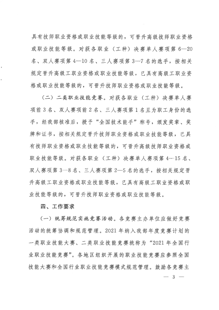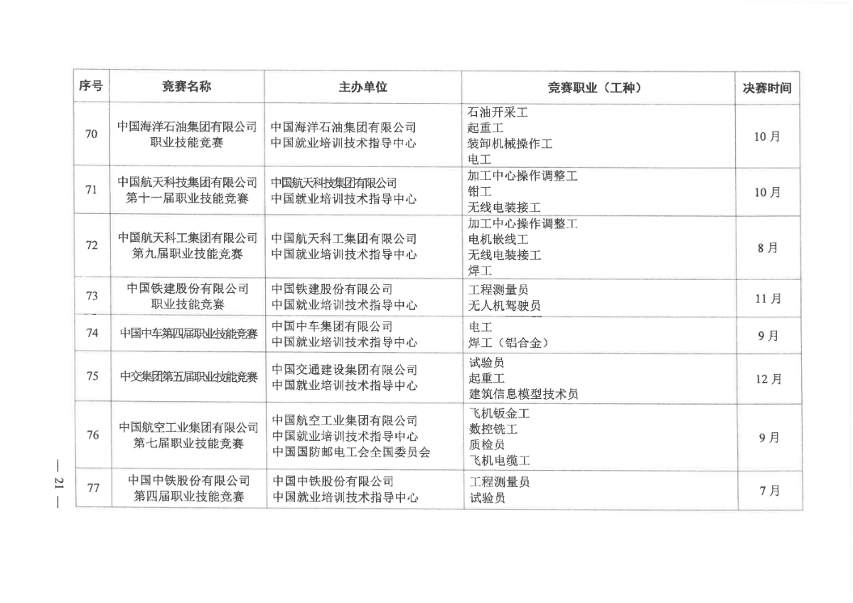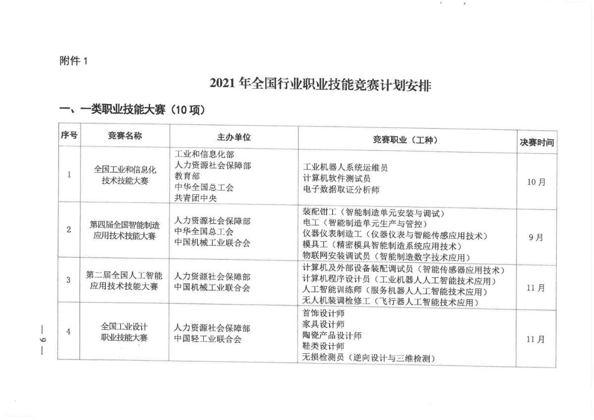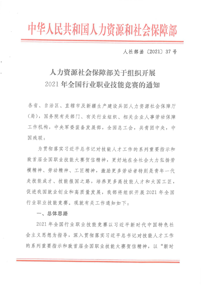 人力資源社會(huì)保障部關(guān)于組織開(kāi)展2021年全國(guó)行業(yè)職業(yè)技能競(jìng)賽的通知