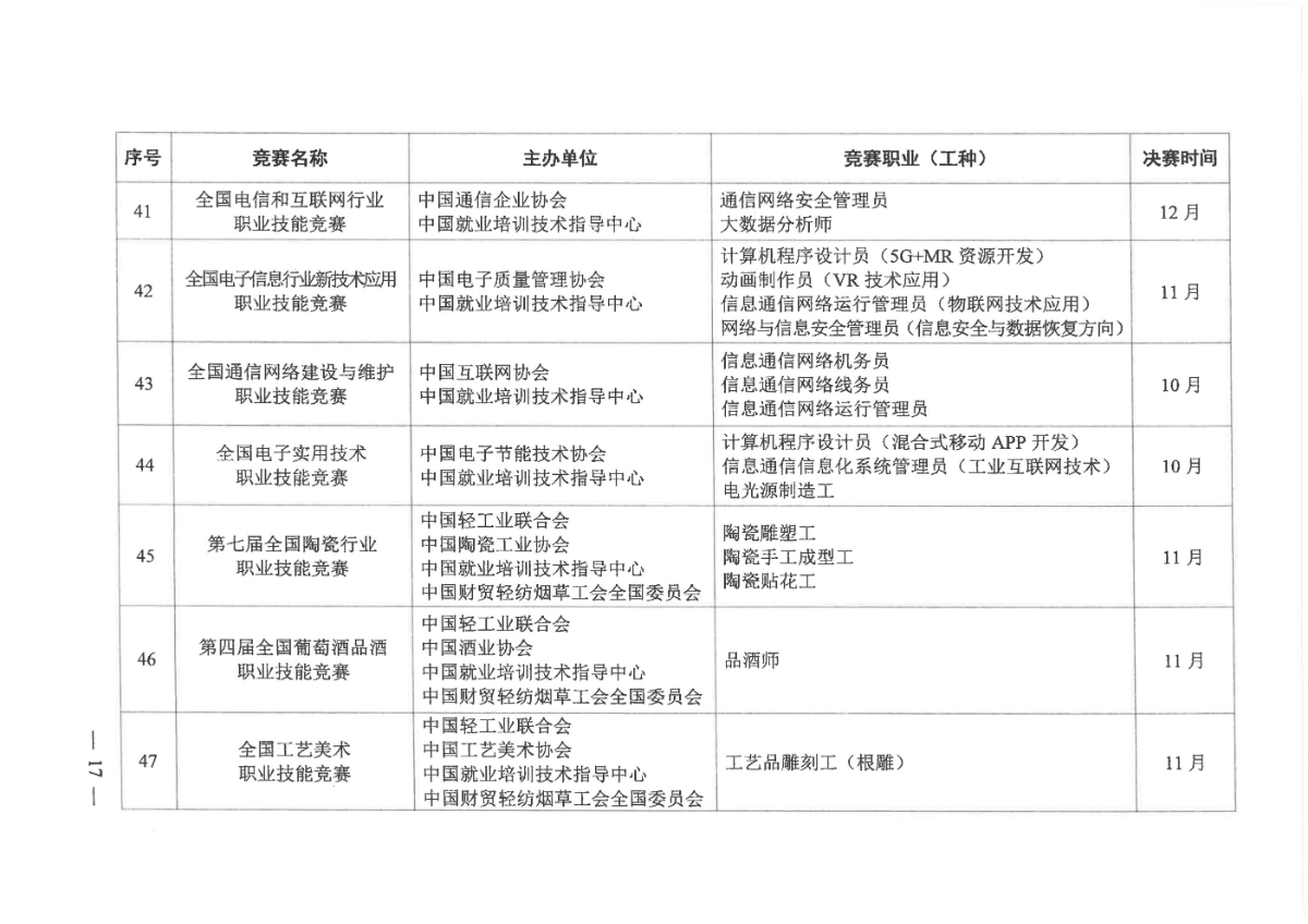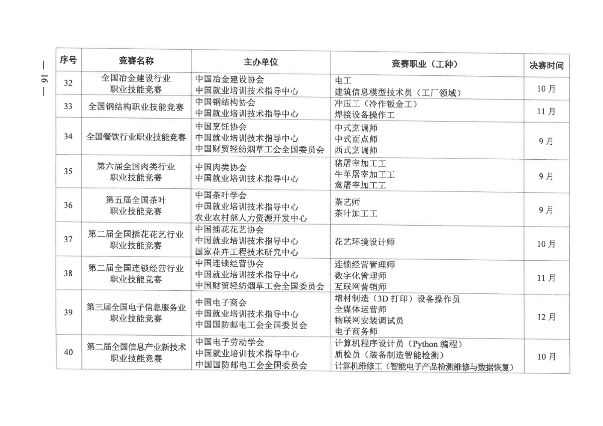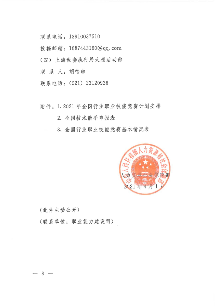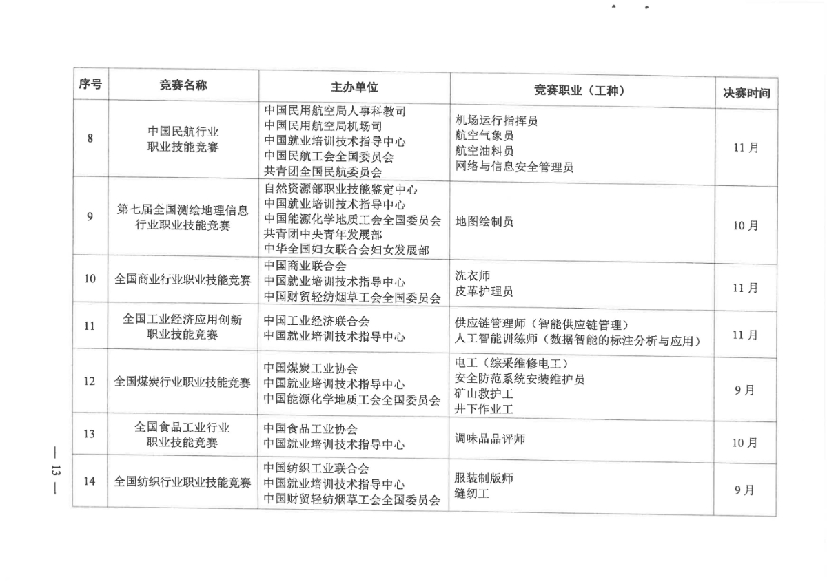 人力資源社會(huì)保障部關(guān)于組織開(kāi)展2021年全國(guó)行業(yè)職業(yè)技能競(jìng)賽的通知