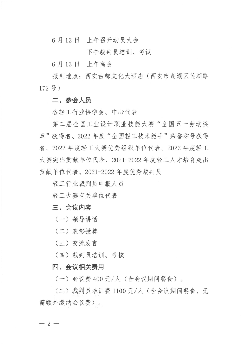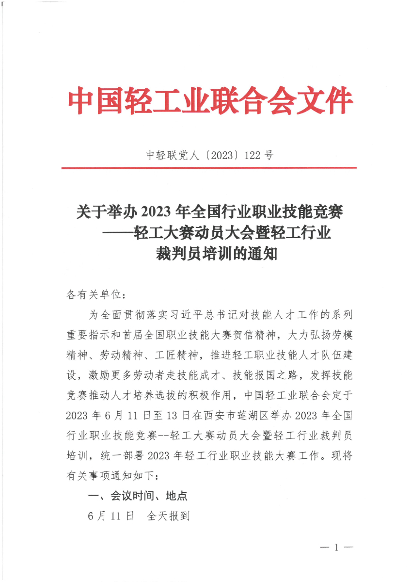 關(guān)于舉辦2023年全國行業(yè)職業(yè)技能競賽——輕工大賽動員大會暨輕工行業(yè)裁判員培訓(xùn)的通知