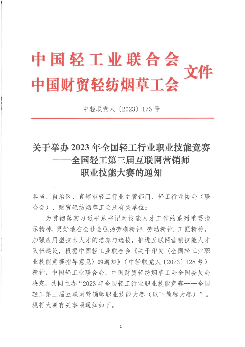 關(guān)于舉辦全國輕工第三屆互聯(lián)網(wǎng)營銷師職業(yè)技能大賽的通知.pdf