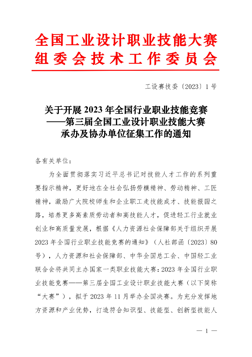 關(guān)于開展第三屆全國工業(yè)設(shè)計(jì)職業(yè)技能大賽承辦及協(xié)辦單位征集工作的通知
