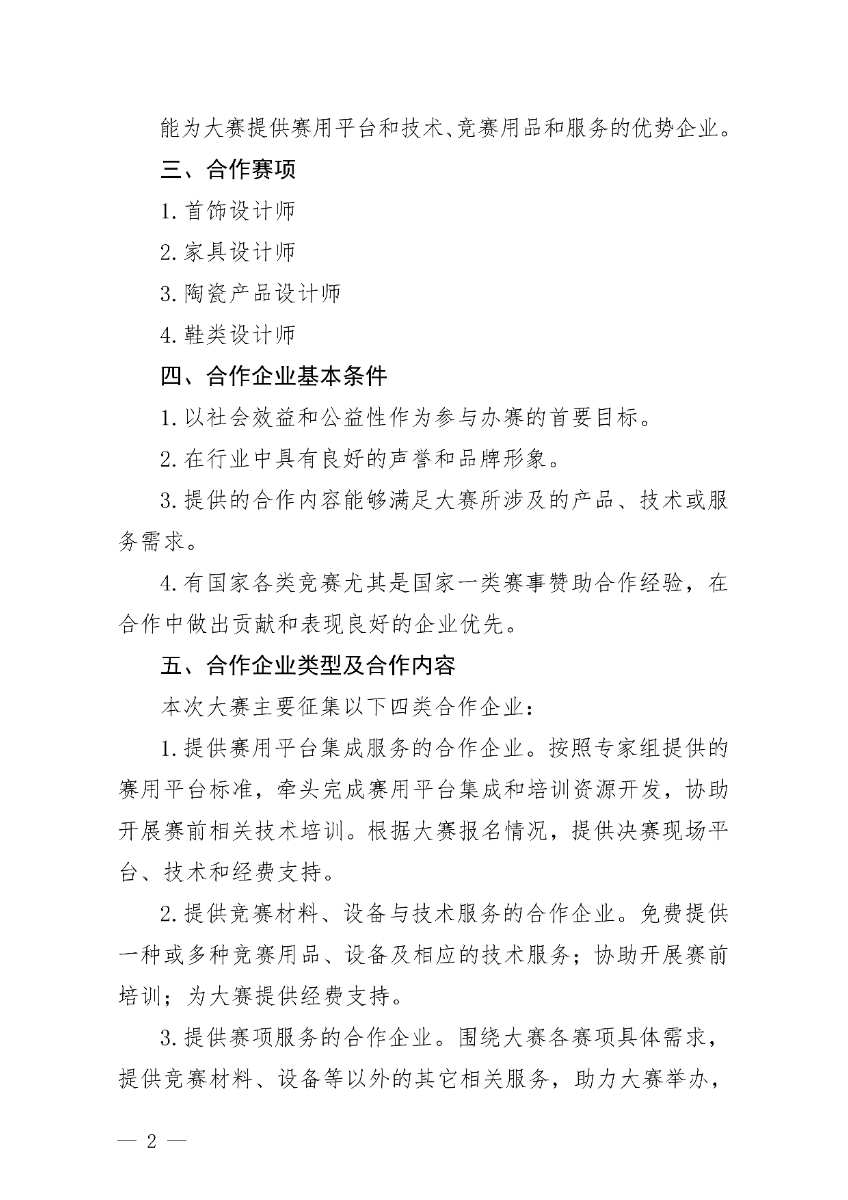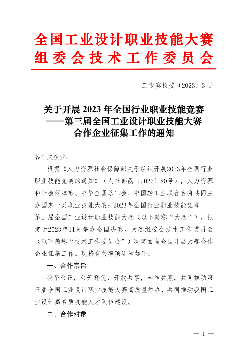 關(guān)于開展第三屆全國工業(yè)設(shè)計(jì)職業(yè)技能大賽合作企業(yè)征集工作的通知