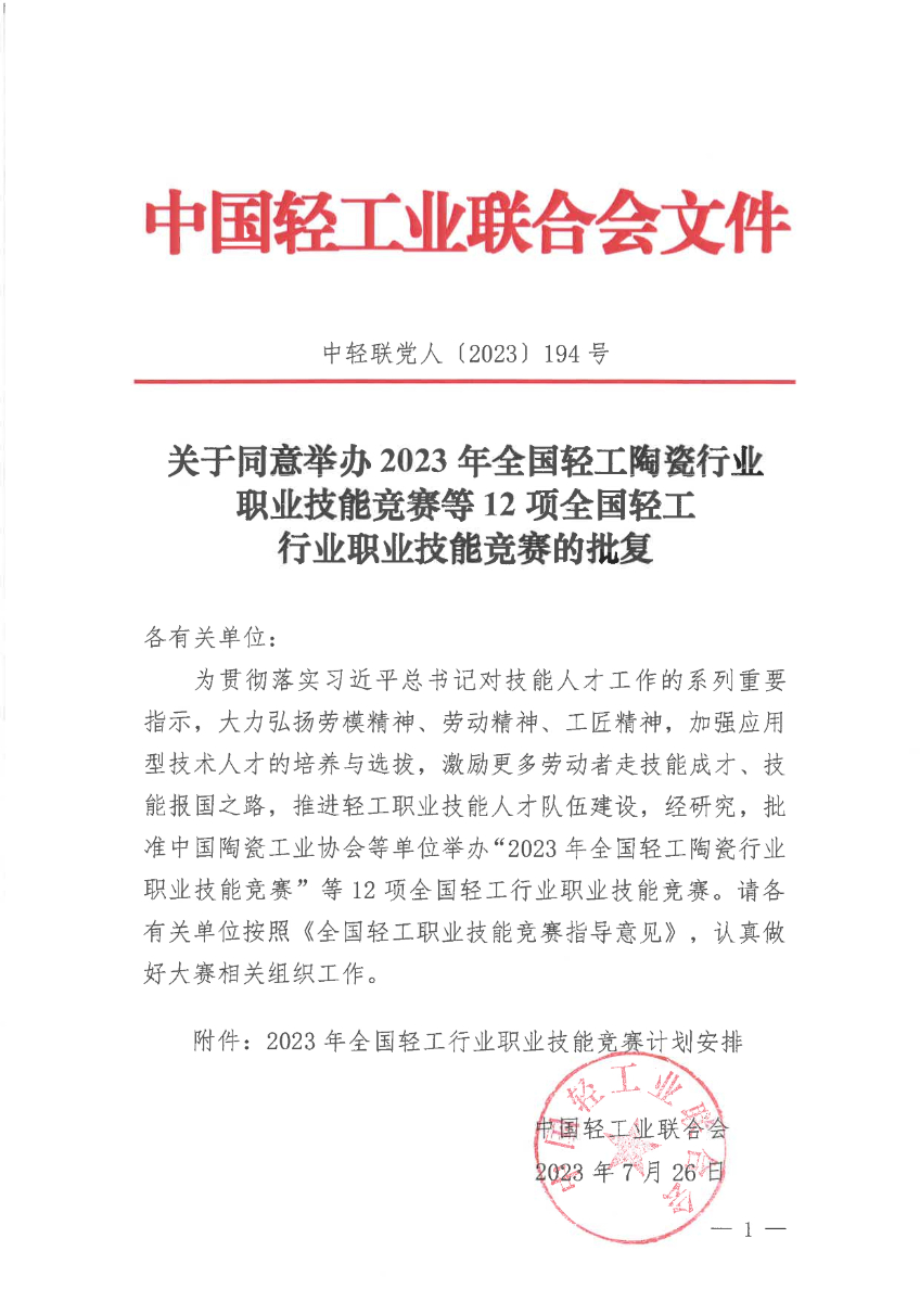 關(guān)于同意舉辦2023年全國輕工行業(yè)職業(yè)技能競賽的批復.pdf