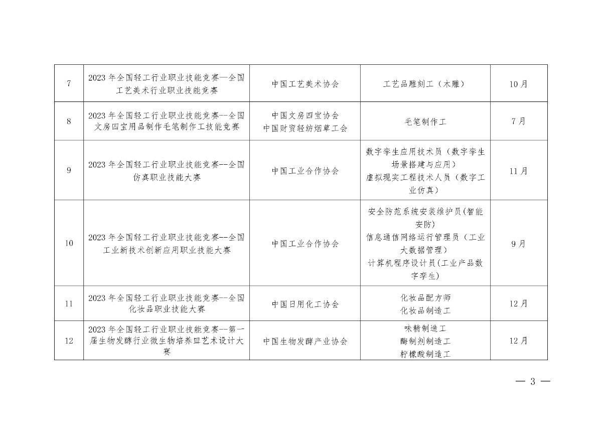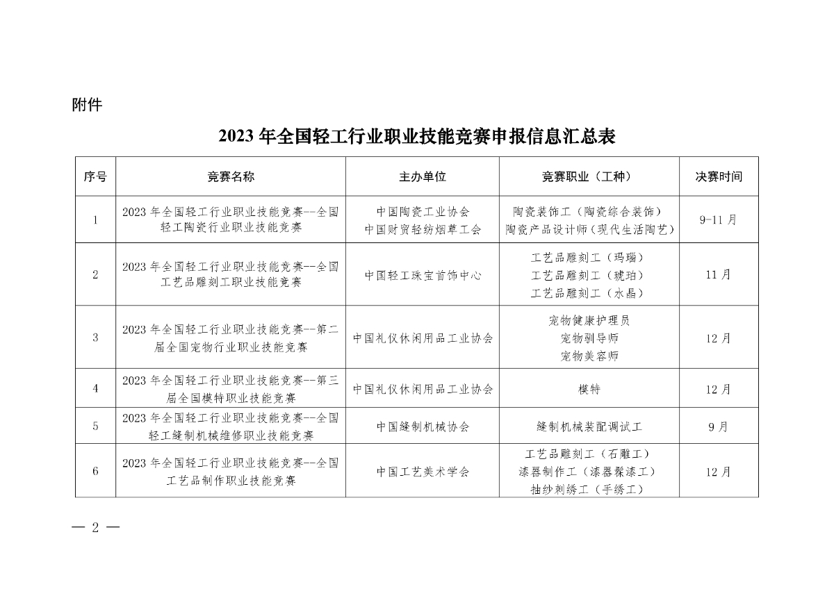 關(guān)于同意舉辦2023年全國輕工行業(yè)職業(yè)技能競賽的批復