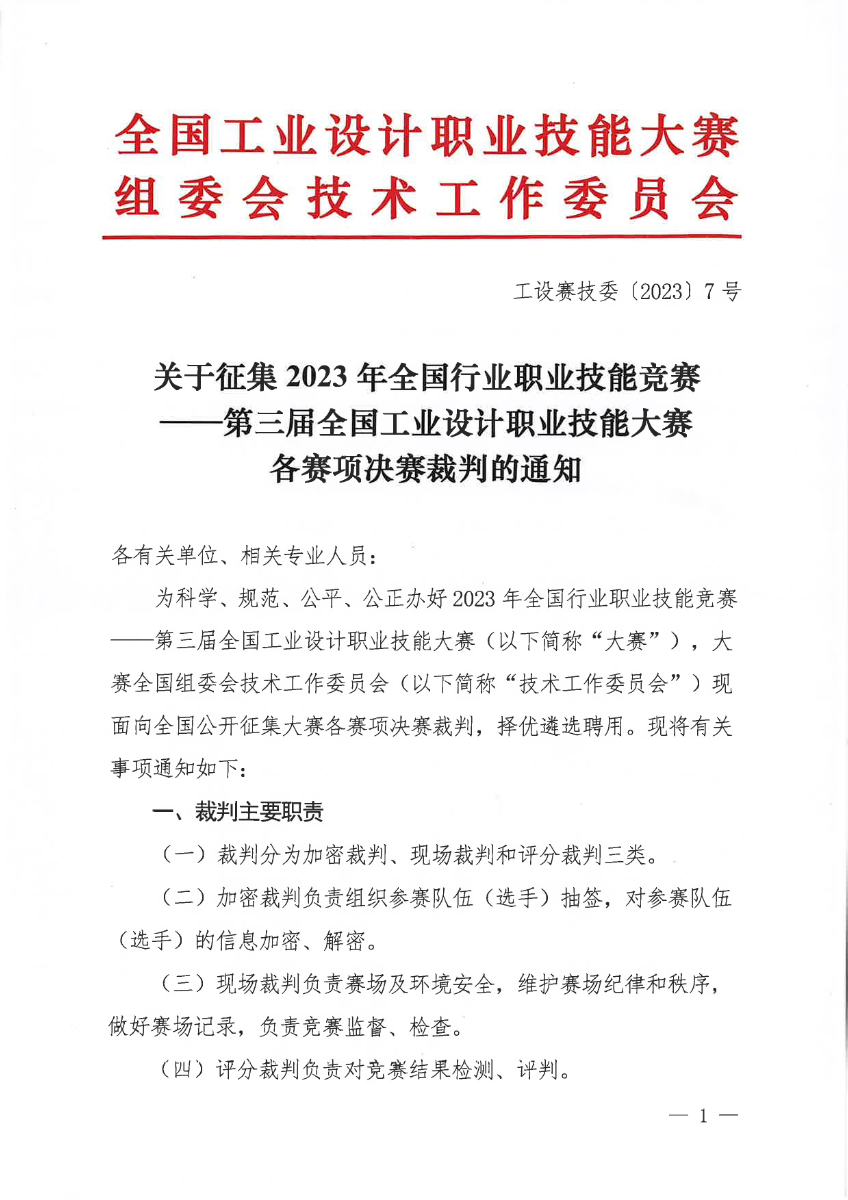 關(guān)于征集第三屆全國工業(yè)設(shè)計職業(yè)技能大賽各賽項決賽裁判的通知.pdf