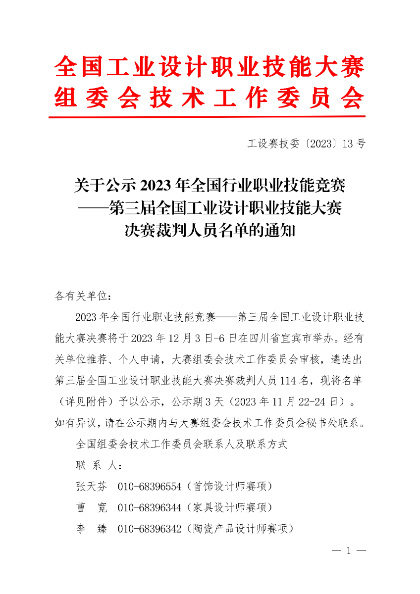 關(guān)于公示第三屆全國工業(yè)設(shè)計職業(yè)技能大賽決賽裁判人員名單的通知.pdf
