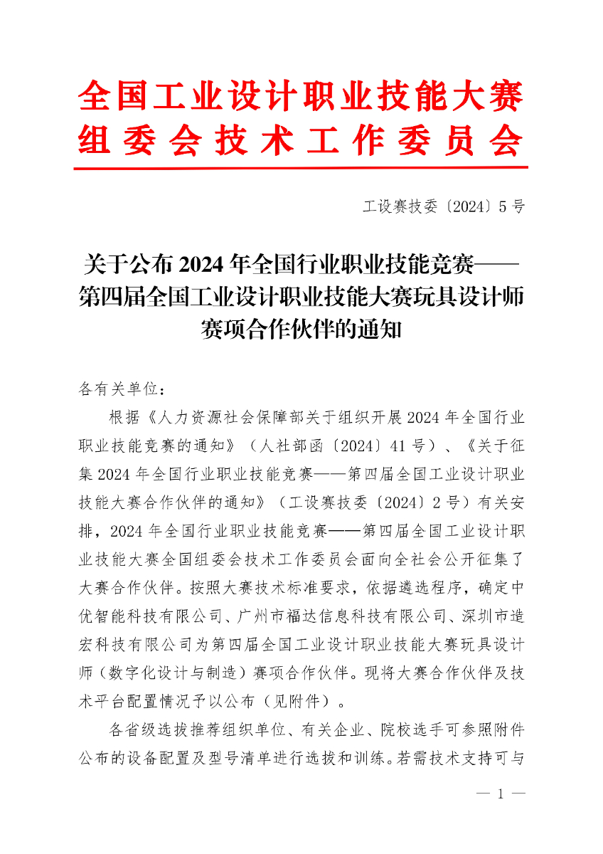 關(guān)于公布2024年第四屆全國工業(yè)設(shè)計職業(yè)技能大賽玩具設(shè)計師賽項合作伙伴的通知