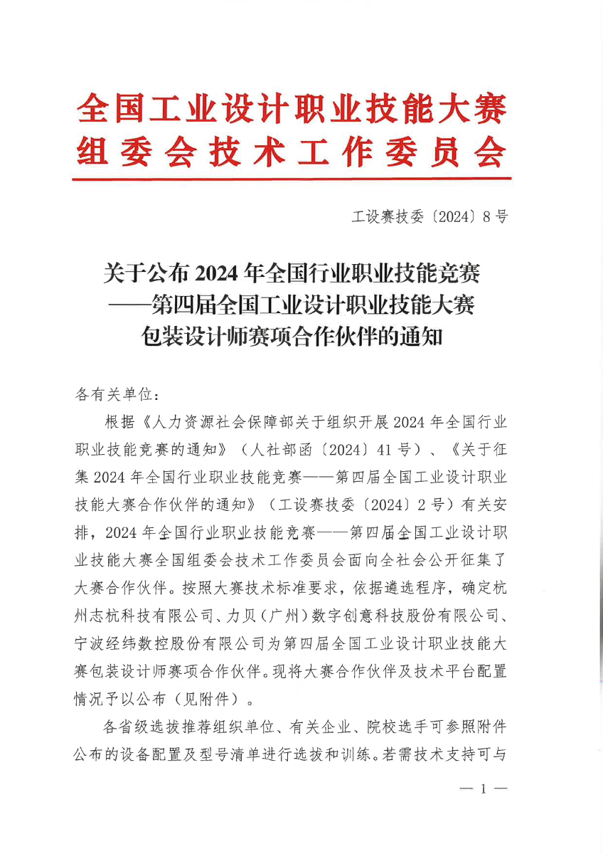 關于公布2024年第四屆全國工業(yè)設計職業(yè)技能大賽包裝設計師賽項合作伙伴的通知
