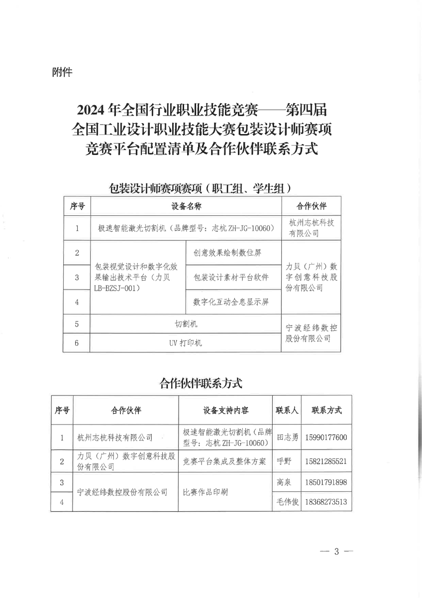 關于公布2024年第四屆全國工業(yè)設計職業(yè)技能大賽包裝設計師賽項合作伙伴的通知.pdf