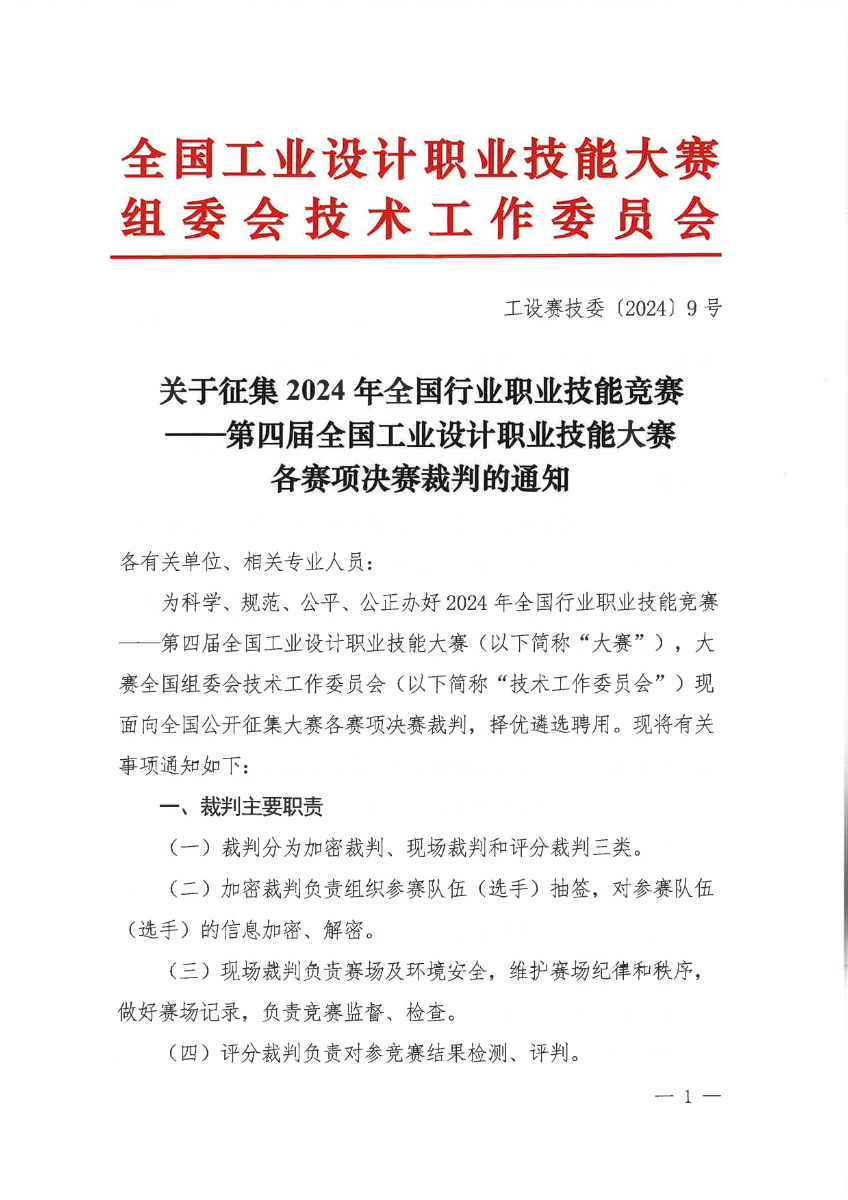 關(guān)于征集2024年第四屆全國(guó)工業(yè)設(shè)計(jì)職業(yè)技能大賽決賽裁判的通知.pdf