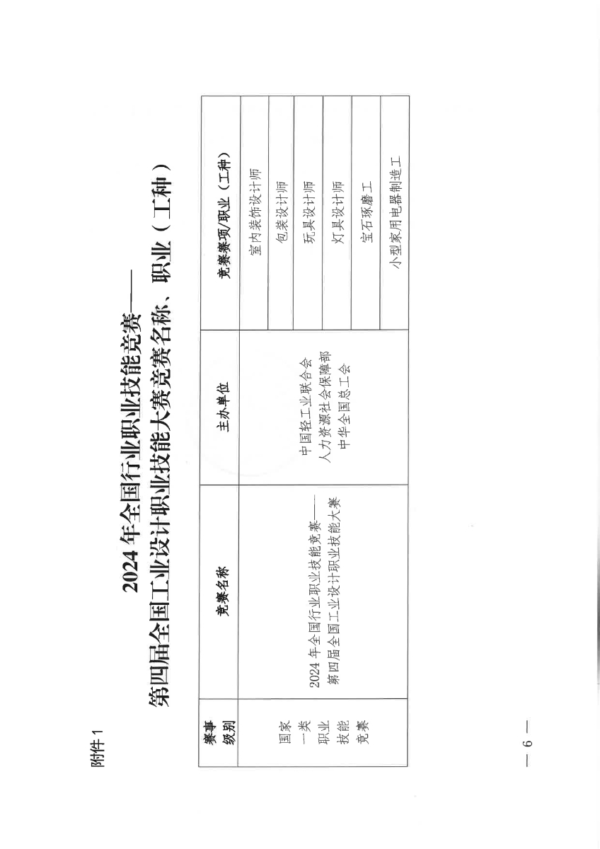 附件1 2024年第四屆全國(guó)工業(yè)設(shè)計(jì)職業(yè)技能大賽競(jìng)賽名稱(chēng)、職業(yè)(工種).docx