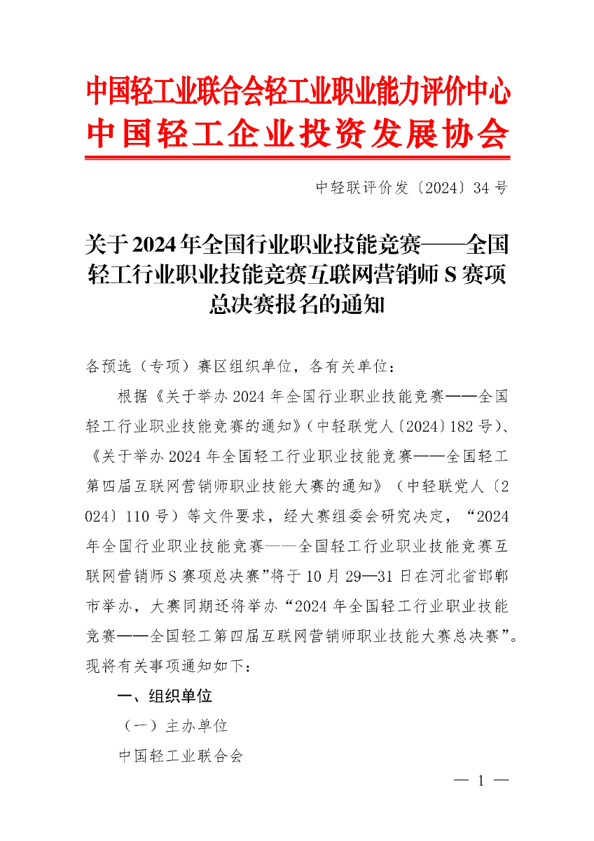 關(guān)于2024年全國輕工行業(yè)職業(yè)技能競賽互聯(lián)網(wǎng)營銷師S賽項(xiàng)總決賽報(bào)名的通知.pdf
