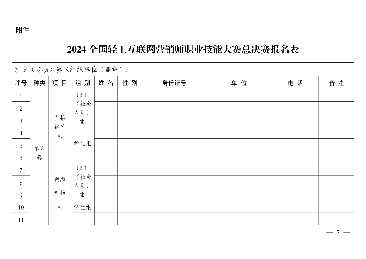 附件 2024全國輕工互聯(lián)網(wǎng)營銷師職業(yè)技能大賽總決賽報(bào)名表.docx
