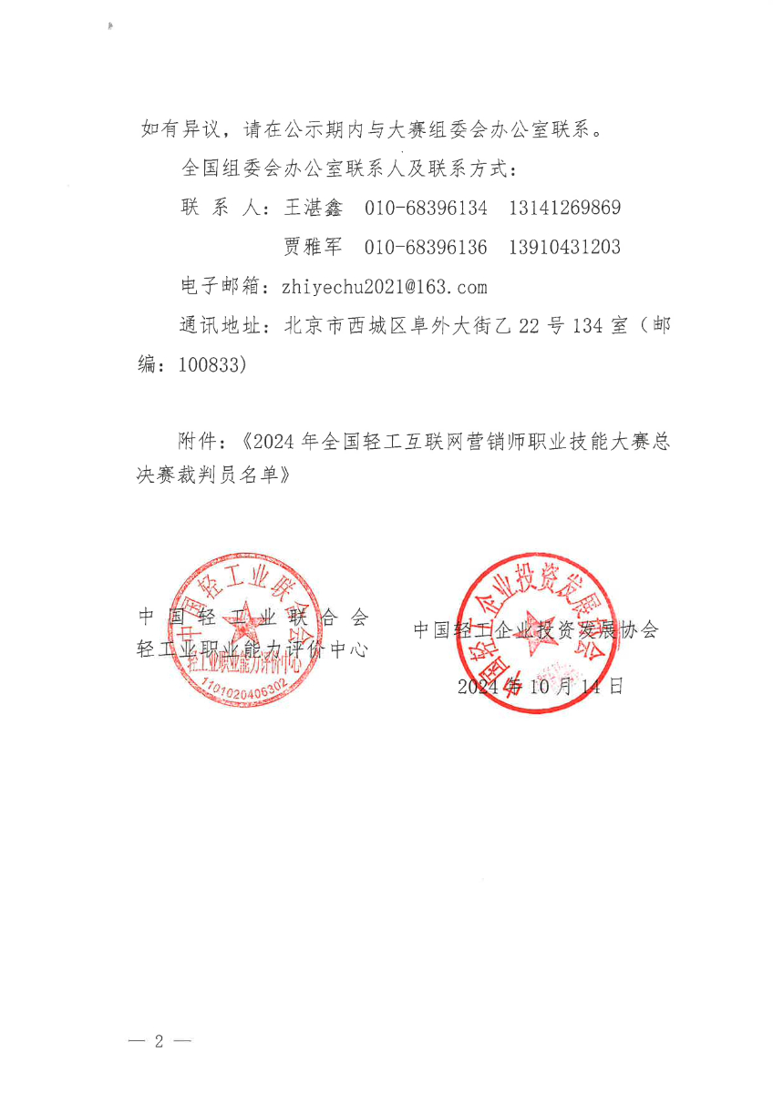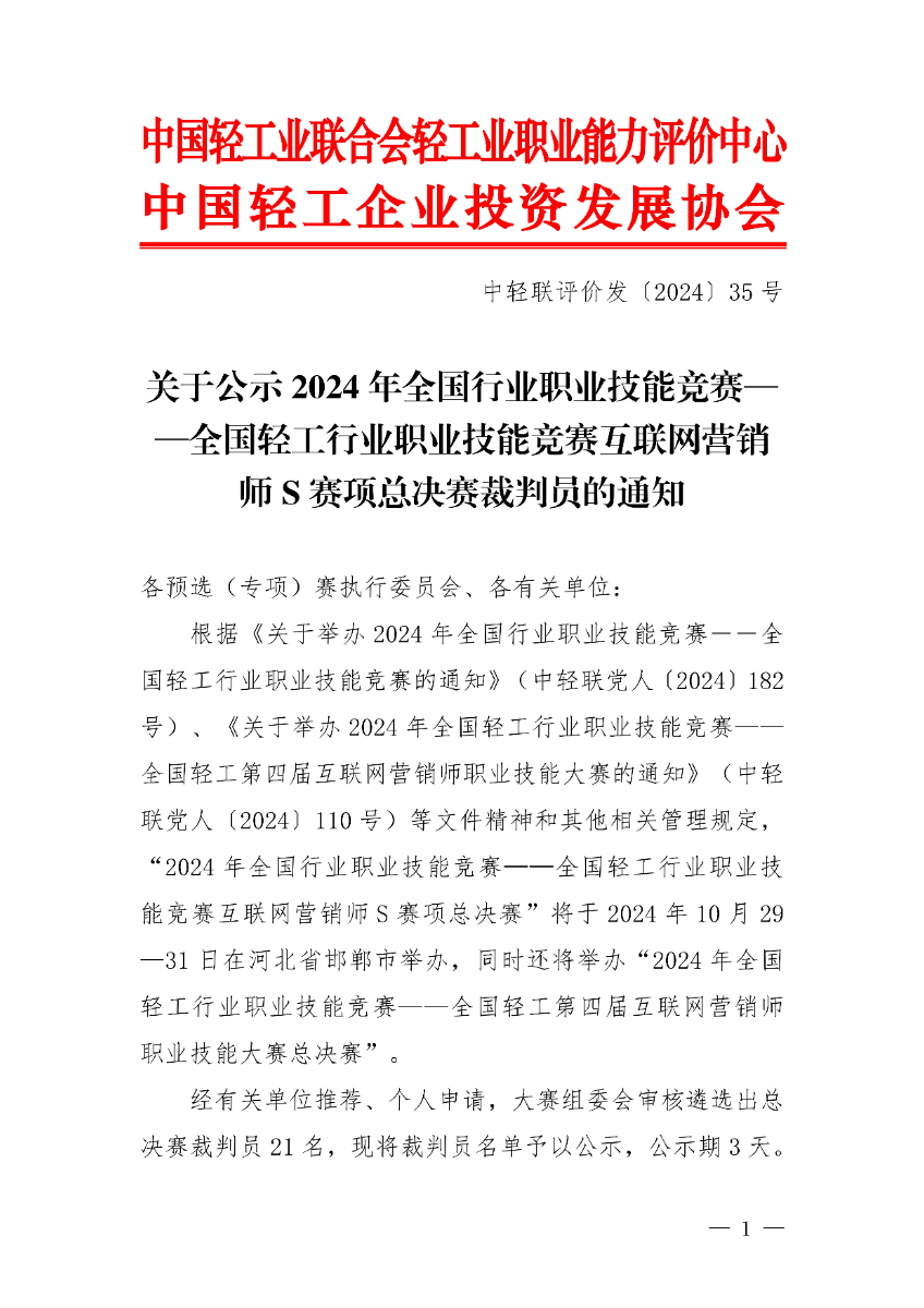 關(guān)于公示2024年全國輕工行業(yè)職業(yè)技能競賽互聯(lián)網(wǎng)營銷師S賽項(xiàng)總決賽裁判員的通知