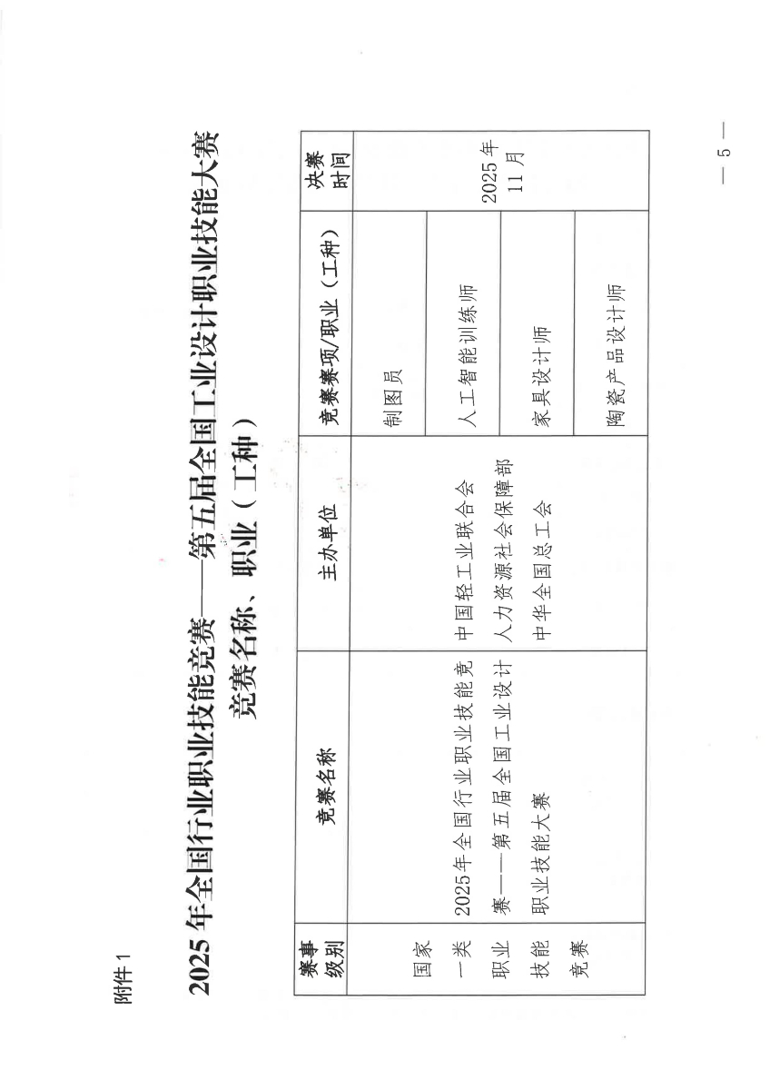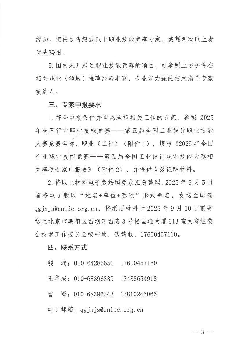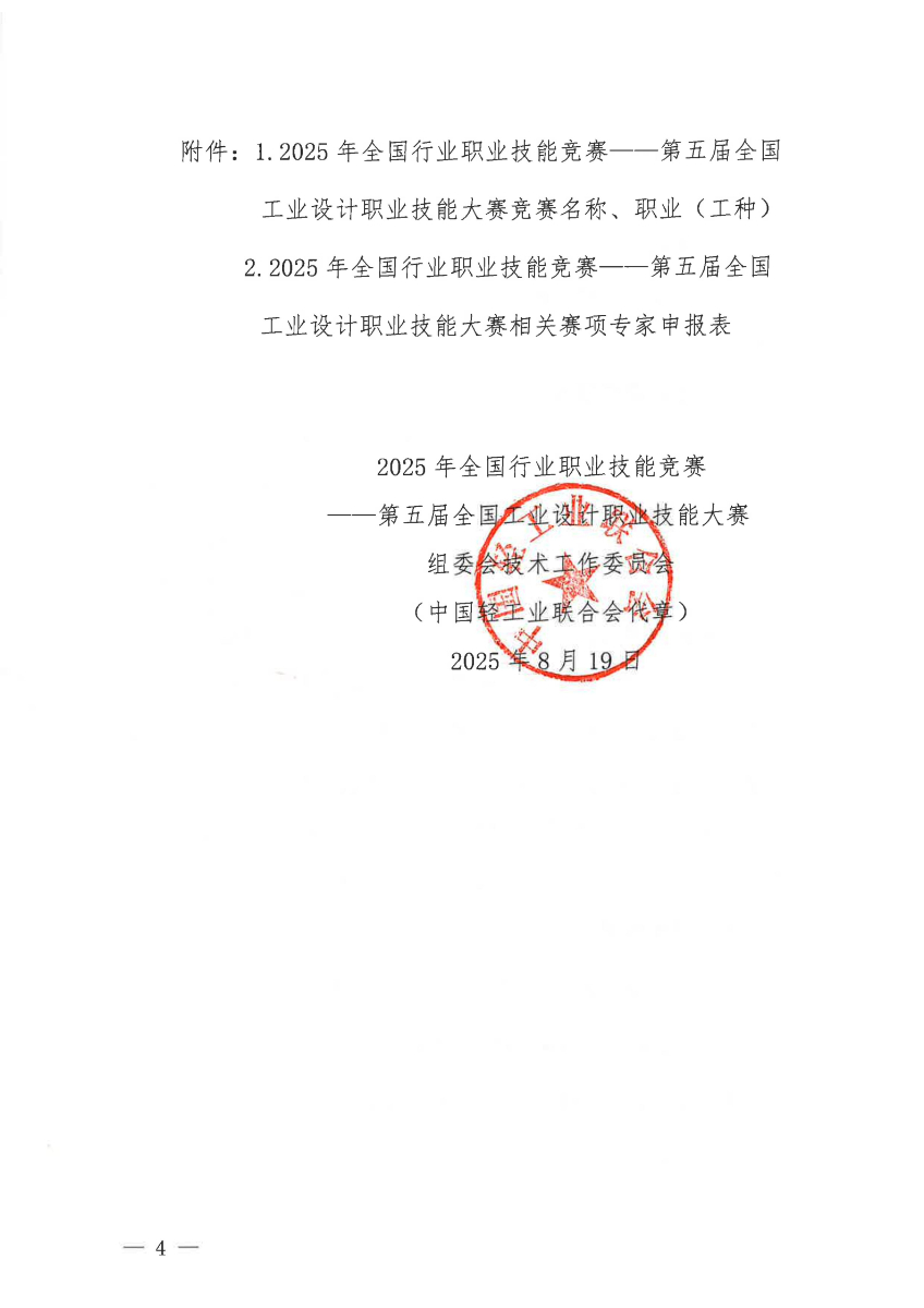 關(guān)于開展2025年第五屆全國工業(yè)設(shè)計職業(yè)技能大賽專家征集工作的通知