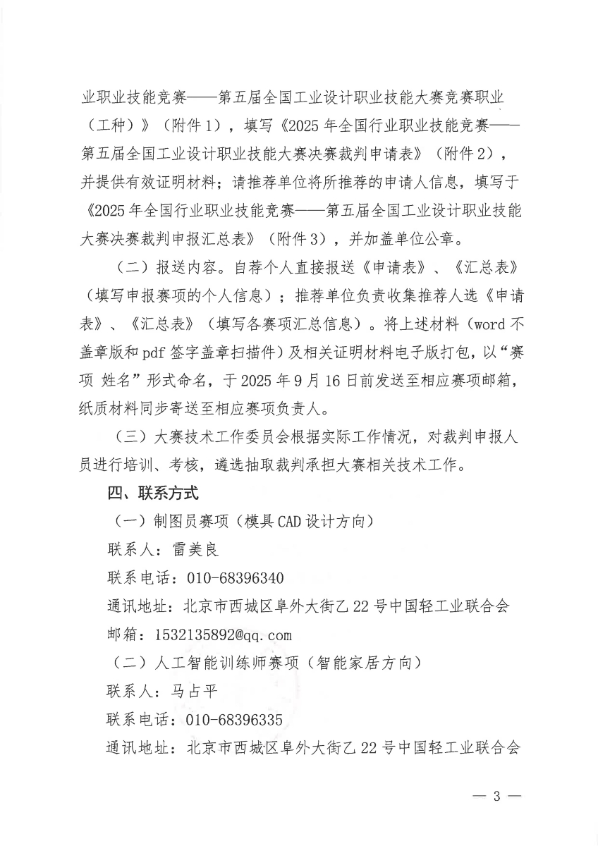 關于征集2025年第五屆全國工業(yè)設計職業(yè)技能大賽決賽裁判的通知