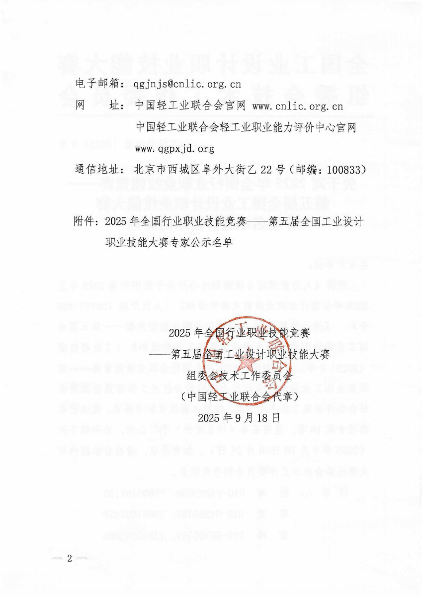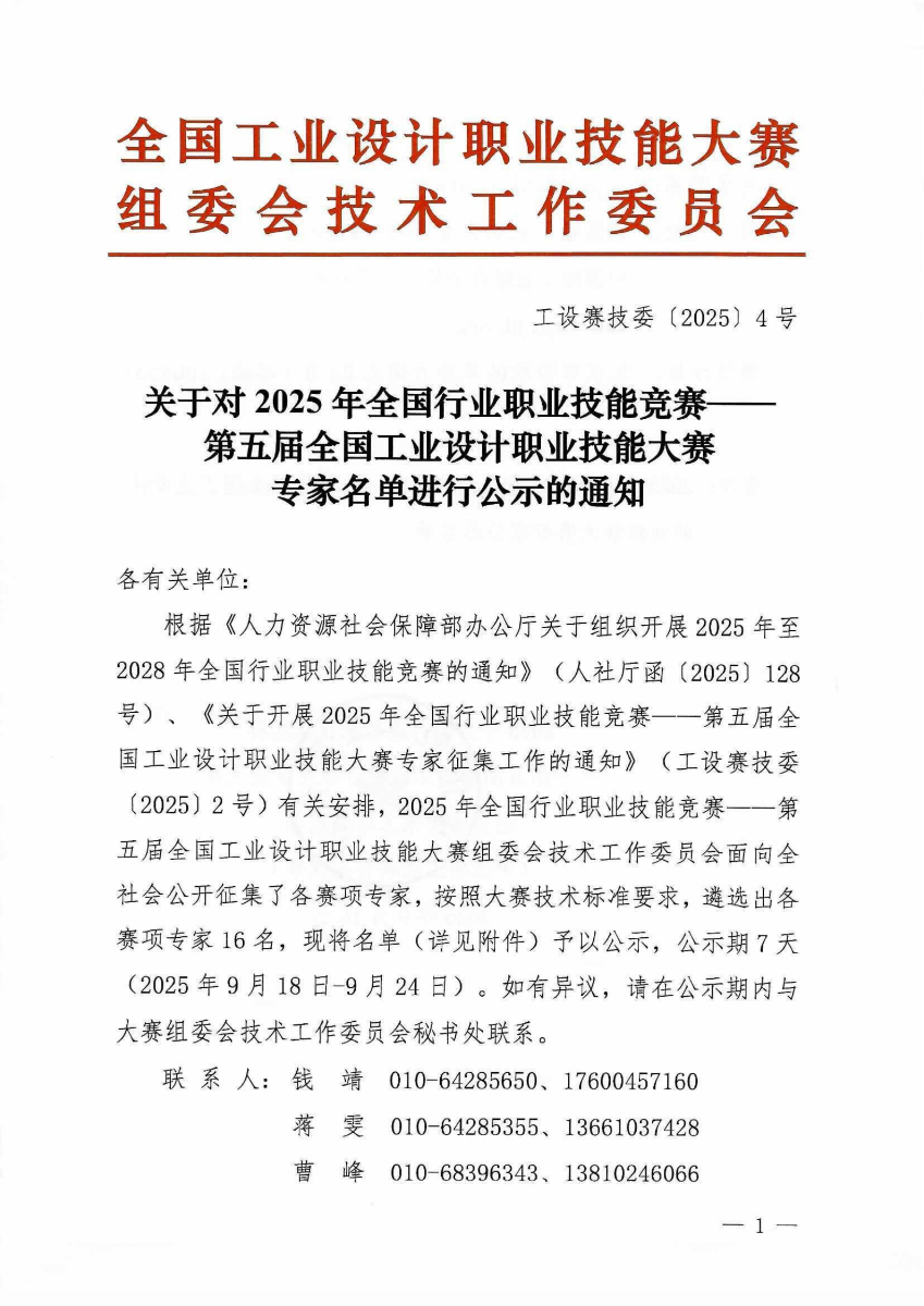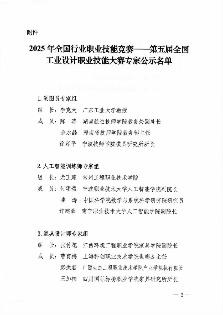 關(guān)于對2025年第五屆全國工業(yè)設計職業(yè)技能大賽專家名單進行公示的通知