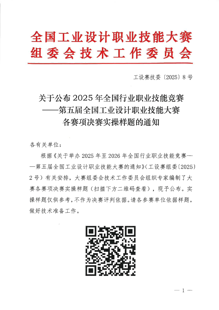 關(guān)于公布2025年第五屆全國工業(yè)設計職業(yè)技能大賽決賽實操樣題的通知