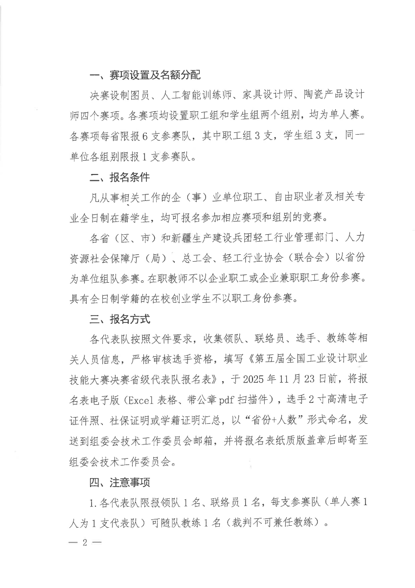 關于2025年全國行業(yè)職業(yè)技能競賽— 第五屆全國工業(yè)設計職業(yè)技能大賽 決賽報名的通知